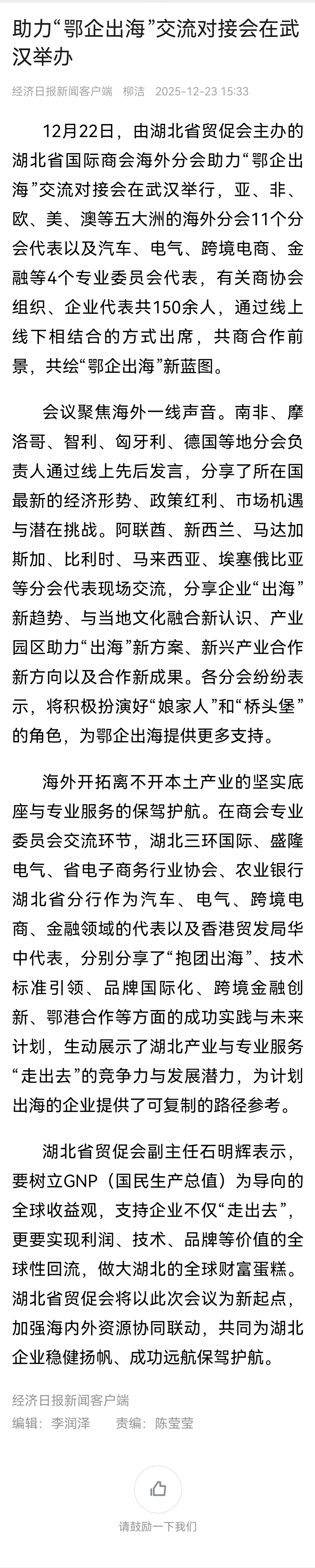 经济日报:助力“鄂企出海”交流对接会在武汉举办