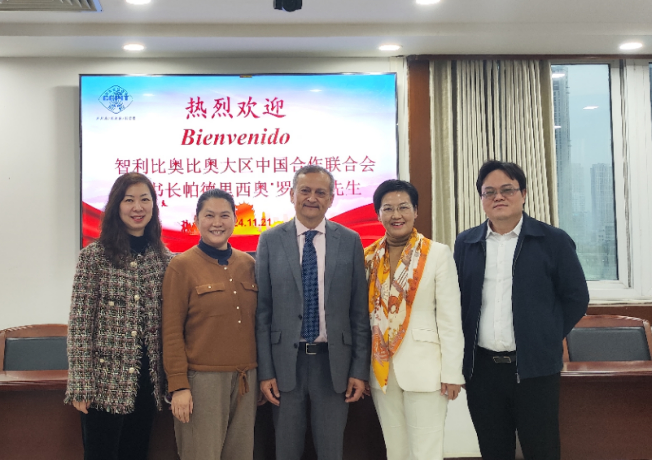 11月21日下午,省贸促会副主任闫梦筠会见了来访的智利比奥比奥大区中国合作联合会秘书长帕德里西奥·罗哈斯一行