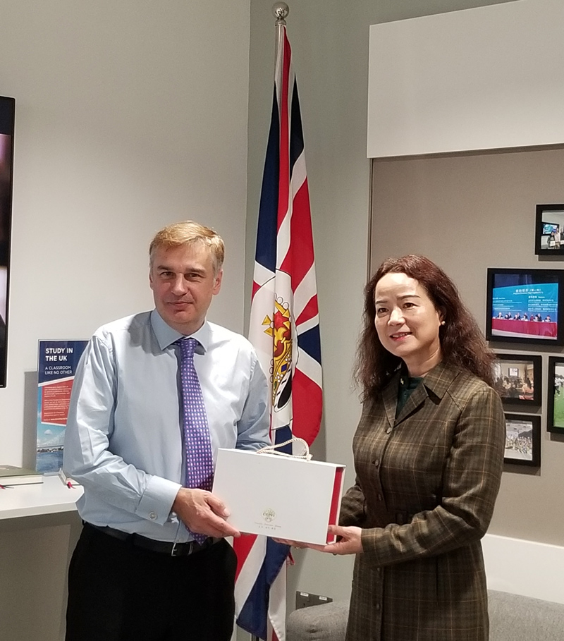 Consul-General Mr. Gareth Hoar expressed his sincere welcome and appreciation to President Zhang Xiaomei and her colleagues’ visit. He said it is admirable that the economy and society of Hubei Province have fully recovered by now, though it has just gone through a very difficult time this year. Mr. John Edwards, British Trade Commissioner for China and Ms. Caroline Wilson, British Ambassador to China, have respectively assumed their new offices in May and September this year, which will definitely promote bilateral exchanges and cooperation between China and the UK. As China is the important market source for the UK, and Hubei is the most important province in central China, it is hoped that we can further strengthen cooperation in the fields of high-tech, environmental protection, infrastructure, education and medical care under the joint effort of the Consulate-General and CCPIT Hubei. The Trade and Investment Consul Mr. Chris Hay and relevant officials introduced the UK's advantages, activity plans and cooperation opportunities in sectors of education, infrastructure, sports, maritime services, medical care, health care, life sciences, and high-end manufacturing.