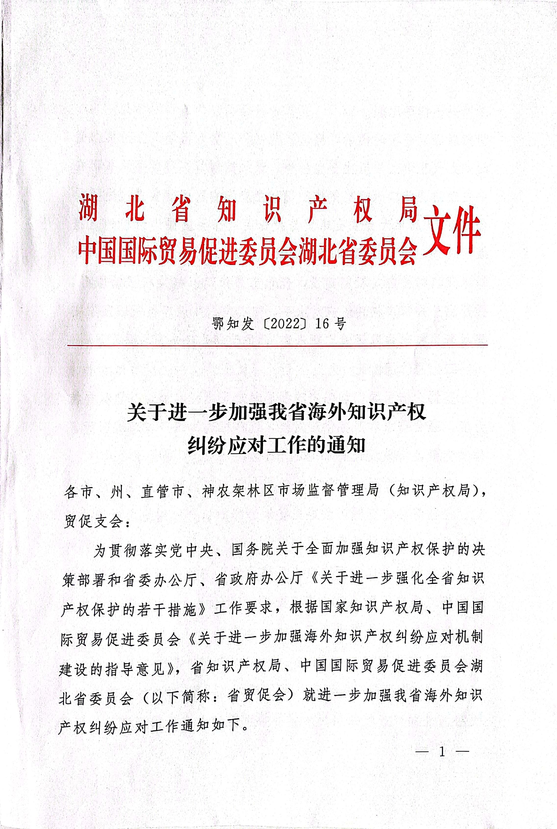 关于进一步加强我省海外知识产权纠纷应对的通知