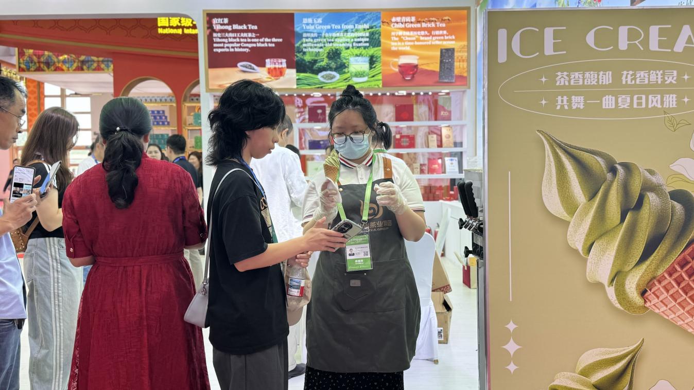 集团在全方位展示茶叶全产业链运营服务商卓越能力的同时,突出展示集团个性化定制服务优势,现场陈列多款定制产品。重点推出供应链合作的创新成果,精心打造并重点呈现“川”字牌青砖茶饮料、玉露茶曲奇、恩施玉露茶啤酒等一系列跨界融合创新产品,为消费者提供多元化产品体验。其中,茶叶冰淇淋成为展会舌尖宠儿,现场排起长队,以舌尖体验拉近了国内外嘉宾与湖北茶文化的距离。