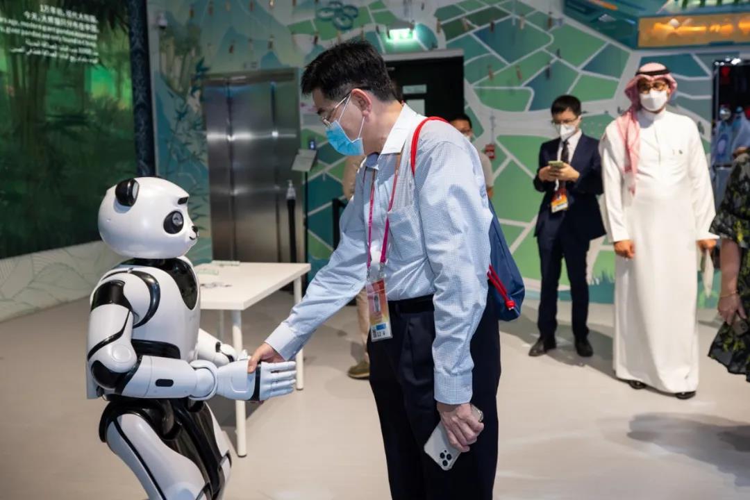 优必选熊猫机器人“优悠”是超人气展项。憨态可掬的太极拳展示引得嘉宾纷纷掏出手机拍照和录像。新加坡馆政府总代表拉里表示,前不久,旅新大熊猫嘉嘉喜得熊猫宝宝,在新加坡引起轰动,今天在中国馆看到熊猫机器人表演,倍感亲切。中国馆将大熊猫这一文化符号与高科技结合,展出熊猫机器人、熊猫长卷影片,独具匠心。