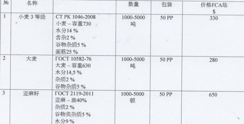 哈萨克斯坦出口小麦、大麦、亚麻籽等农产品