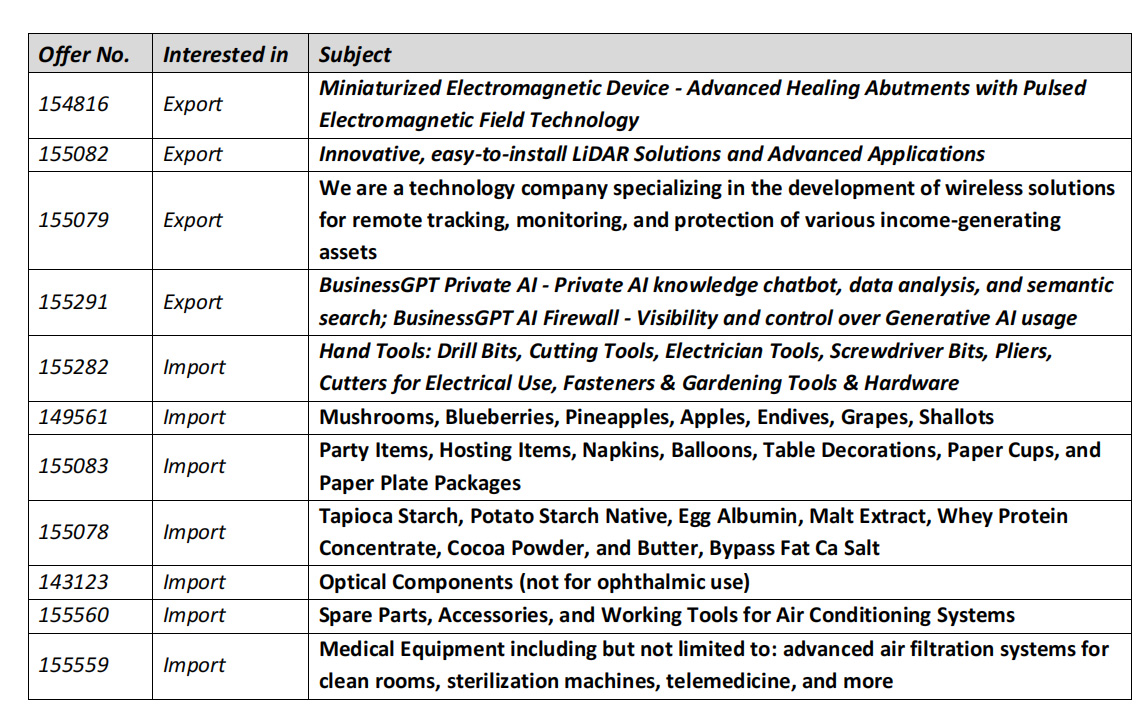 近日,以色列商会联合会发布系列进出口商机,涉及农产品、医疗器械、机械零件及科技产品,需求目录如下,点击附件可下载获取具体信息。有意合作者请提供中英文公司名称、产品介绍和联系方式,谢谢合作!
