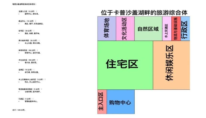 本项目致力于在哈萨克斯坦阿拉木图州卡普沙盖湖区沿海度假区打造多功能综合体,旨在为家庭生态和活跃休闲提供全方位旅游服务。项目规划总面积 125 公顷,各功能区规划包含商业中心、住宅区、娱乐和休闲区、文化活动区等。