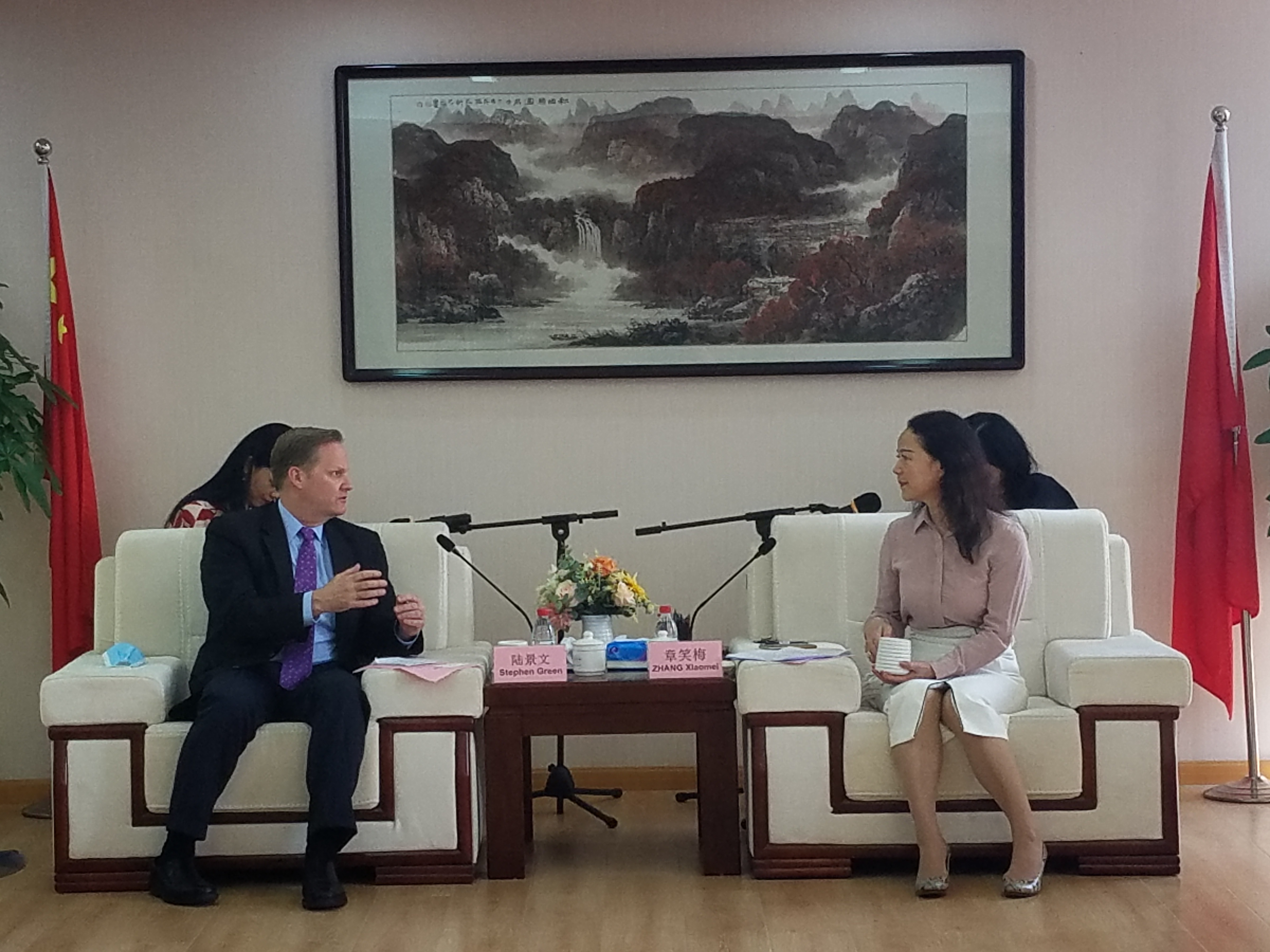 9月13日下午,章笑梅主任与到访的美国驻华大使馆商务参赞陆景文(Stephen Green)一行举行了工作会谈。