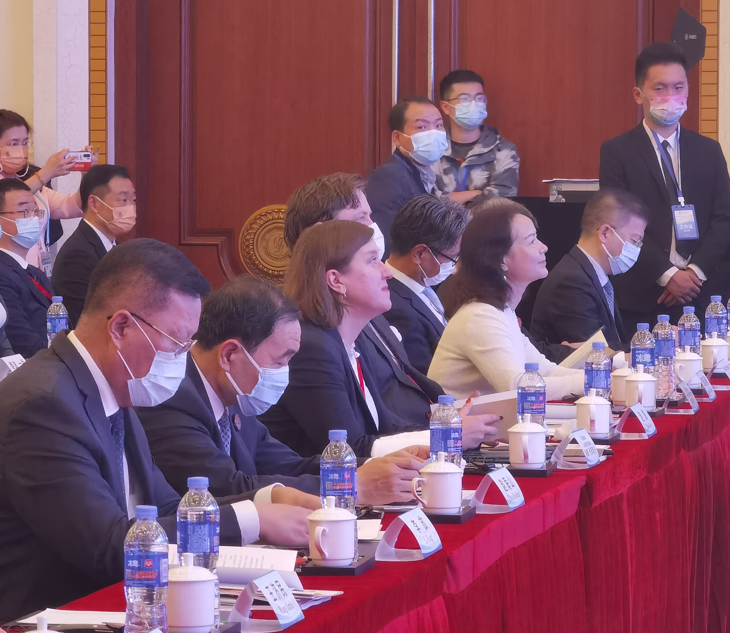 章笑梅主任陪同赵副省长先后巡视了湖北综合形象和“货到汉口活”展区,出席了赤壁青砖茶国际(上海)体验馆开馆、剪彩、特色产品展示活动,走访了拜耳、西门子(瓦里安)等知名企业展台,见证了拜耳与九州通战略合作签约,参加了2021鄂沪(长三角地区)经贸合作暨开放平台投资推介会,会见了乌克兰驻华大使馆临时代办张娜·列亲斯卡女士和肯中合作委员会、国家绿色发展基金、博枫可再生能源、三菱商事等商协会及企业负责人,调研了特斯拉上海超级工厂、闻泰科技,围绕湖北商贸物流、高端制造、清洁能源等领域合作进行了广泛交流。