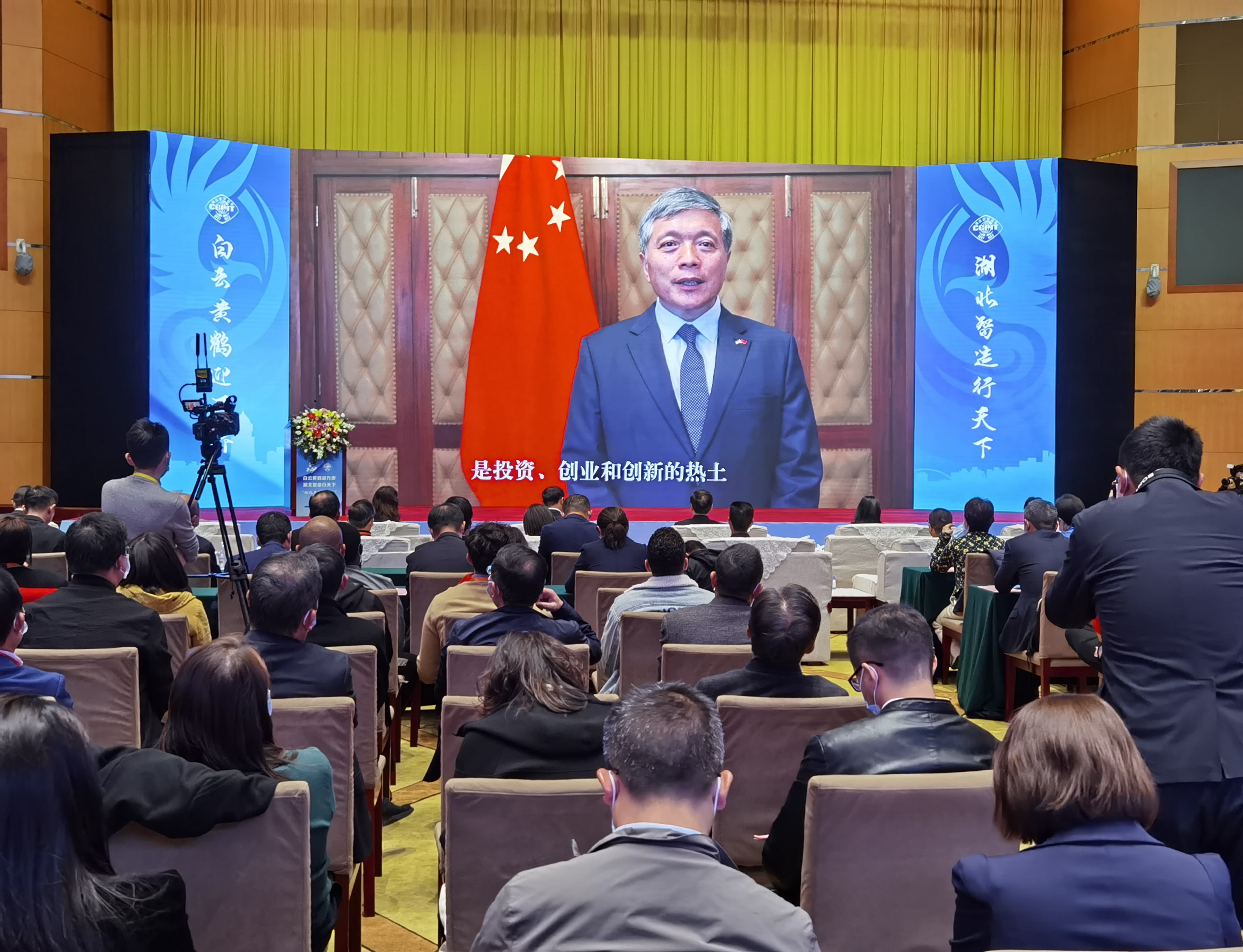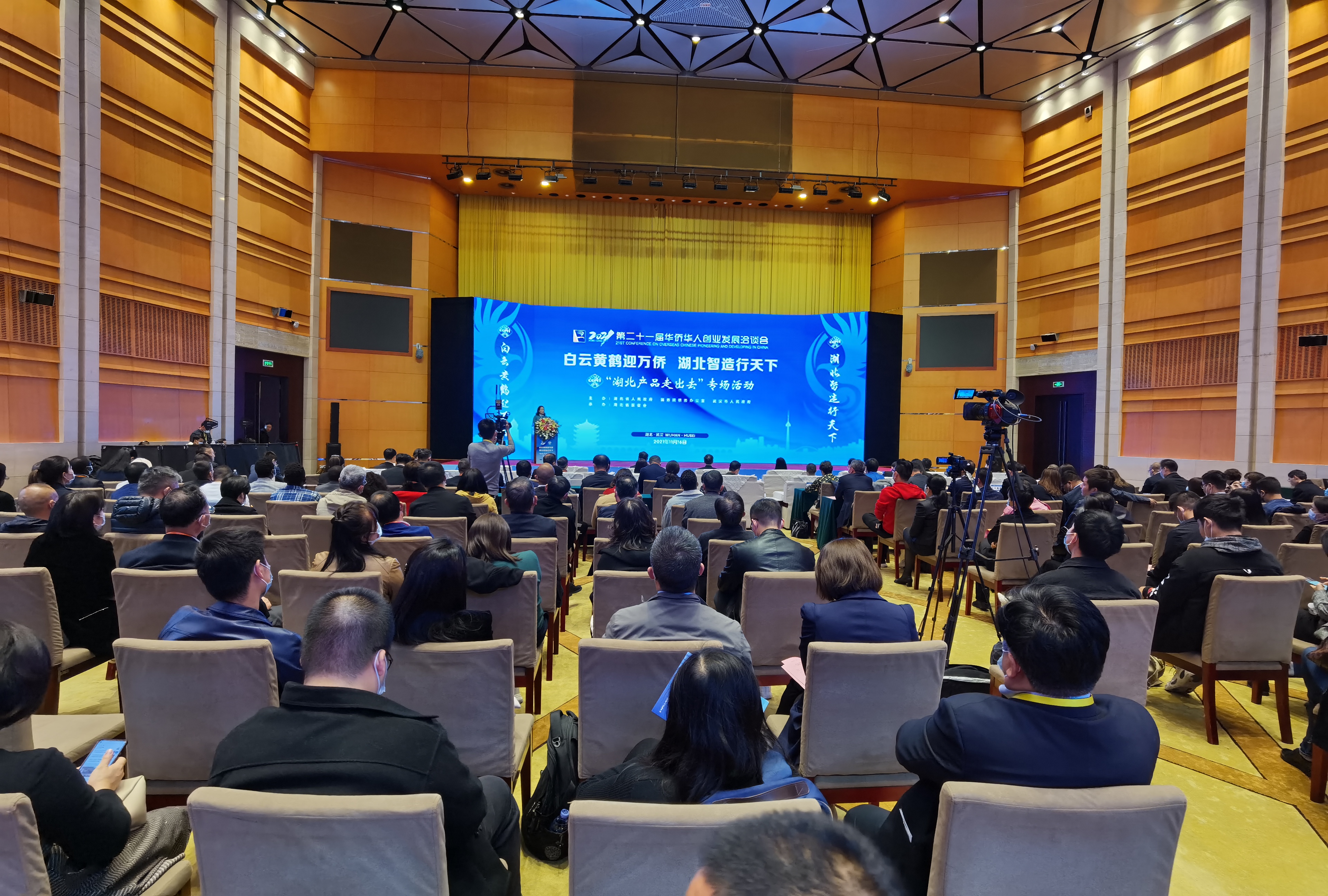 11月16日,东湖国际会议中心黄鹤厅宾客云集、气氛热烈,湖北省贸促会再赴全球华人华侨之约,成功举办“白云黄鹤迎万侨 湖北智造行天下”——2021年华创会湖北产品“走出去”专场活动。10余万侨胞齐聚线上线下。湖北省人民政府副省长赵海山出席并致辞,美国驻汉总领事蓝如瑾,驻鄂机构及友好商协会、侨领侨商及企业代表二百余人现场参会,省贸促会主任章笑梅主持活动。