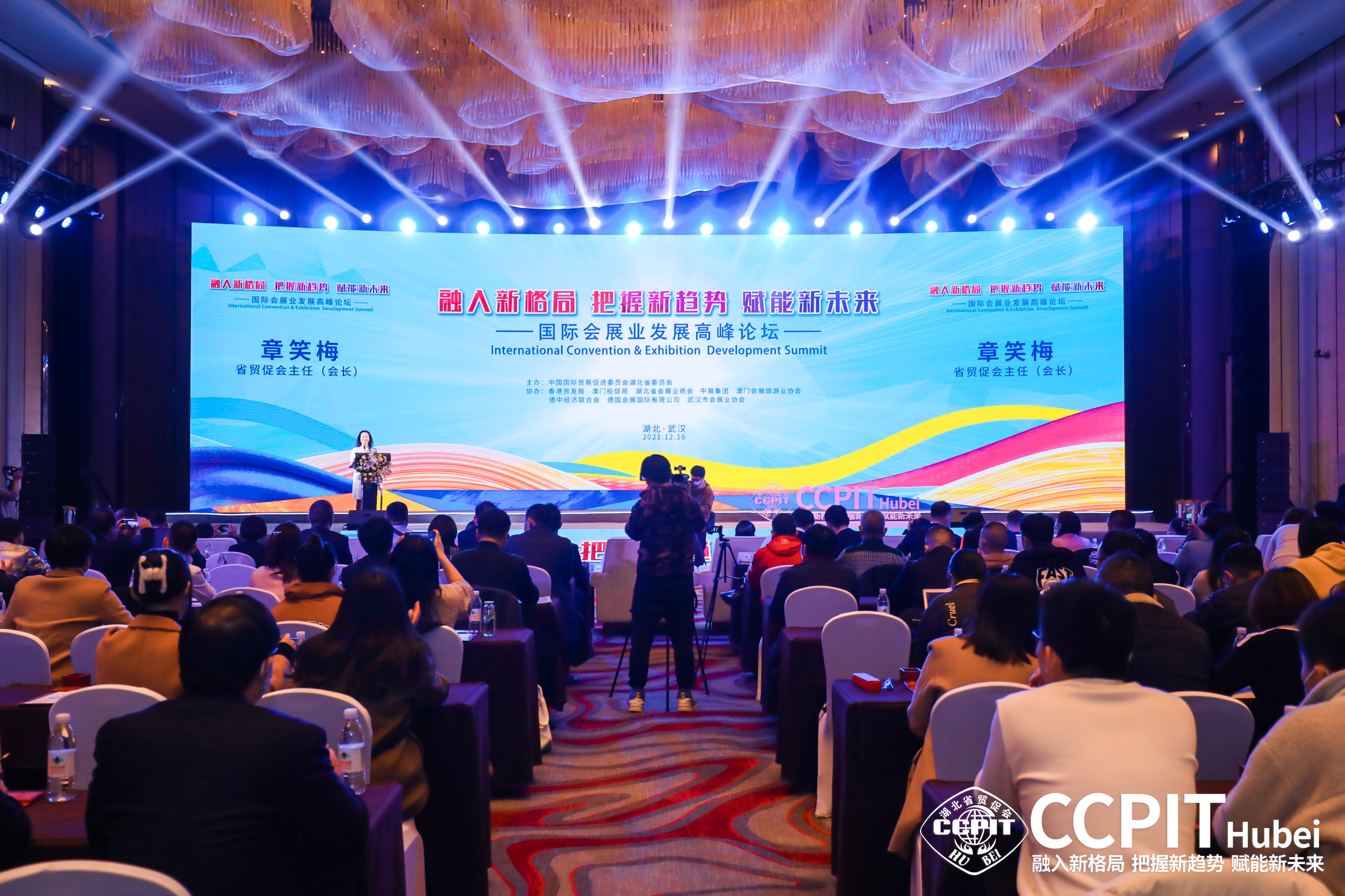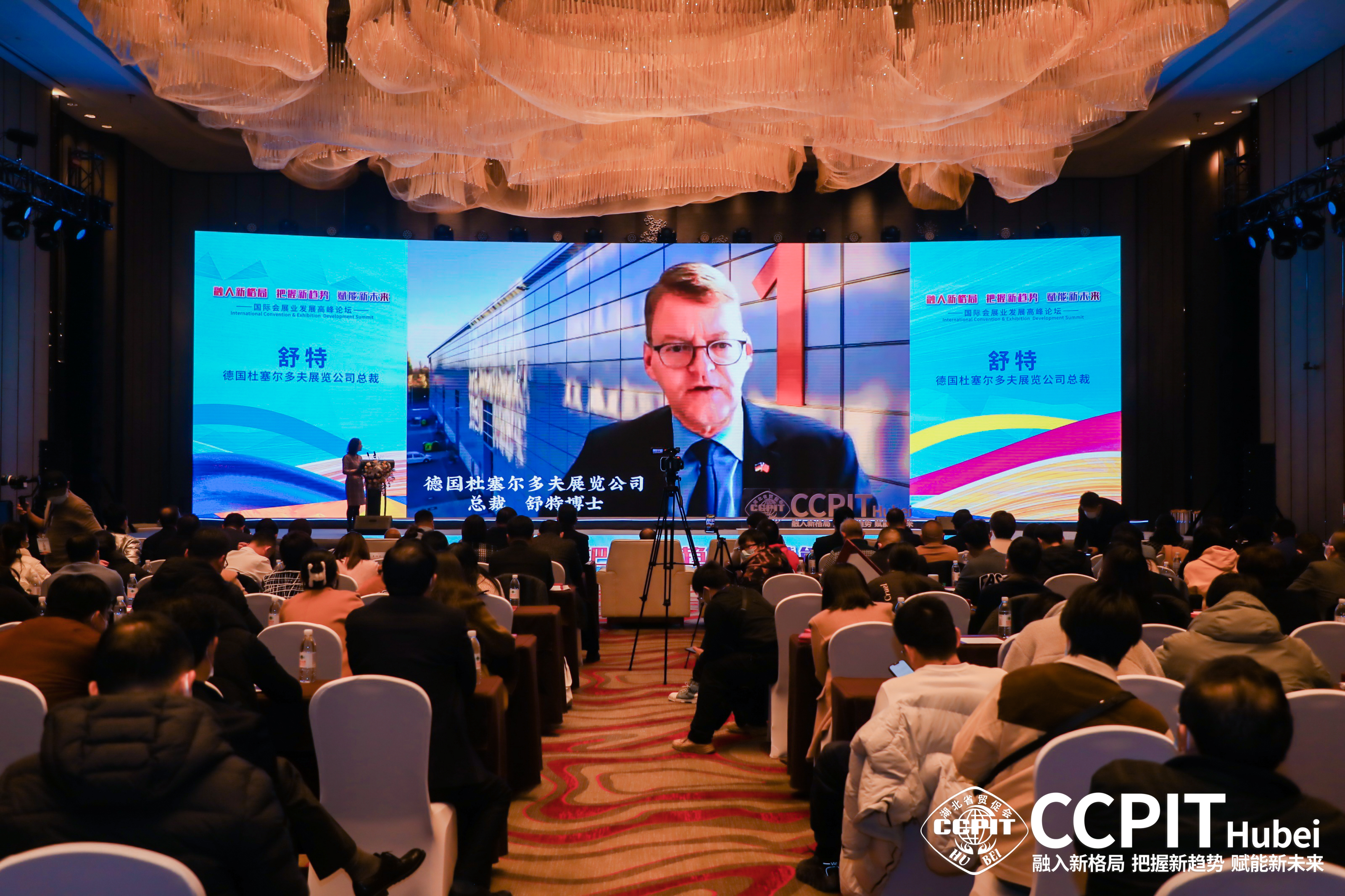 会展业作为现代服务业的重要组成部分,是促进经济发展的重要引擎,是推动经济全球化的重要平台和对外开放的展示窗口。在后疫情时期,为促进行业创新、深化跨界融合、推动会展升级、助推产业链上下游深度交流合作,为我省会展业逆势启航把脉问诊、建言献策,12月16日,省贸促会在汉成功举办“融入新格局 把握新趋势 赋能新未来”—后疫情时代国际会展业发展高峰论坛。省政协副主席张柏青出席并致辞,泰国驻华大使阿塔育·习萨目及夫人,斯里兰卡驻华大使帕里塔·科霍纳,萨尔瓦多驻华大使阿尔多·阿尔瓦雷斯,乌克兰驻华大使馆一等秘书谢尔盖·特姆齐亚西,中国会展经济研究会常务副会长储祥银出席,省贸促会主任章笑梅主持,国际国内会展业专家学者、会展机构和企业代表近300人参加活动。