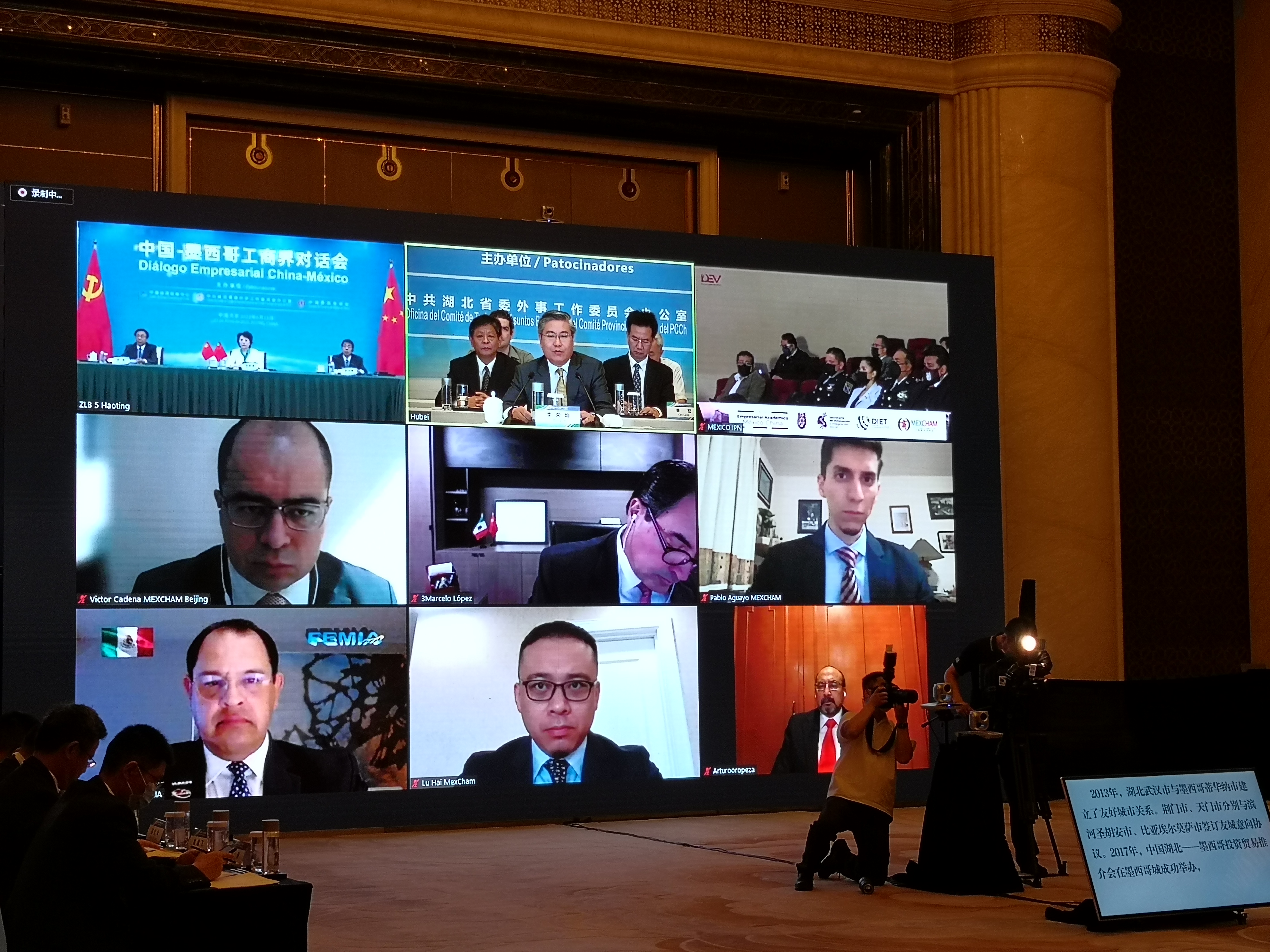 中共中央对外联络部副部长沈蓓莉、湖北省委副书记李荣灿、墨西哥众议院墨中议会友好小组主席严迪克尔·勃列文斯基、墨西哥下加尼福利亚州州长玛丽娜·欧敏达出席会议并致辞。李荣灿副书记在讲话中对省政府主办、我会承办的“2017中国湖北省-墨西哥投资贸易推介会”以及湖北省国际商会墨西哥分会的成立予以充分肯定。省委外办、中墨双方商协会、企业和高校代表就中墨产业优势和务实合作作交流发言。与会双方共同回顾了中墨合作辉煌历史,共同探讨后疫情时代携手应对挑战,对未来进一步拓展合作领域充满信心。