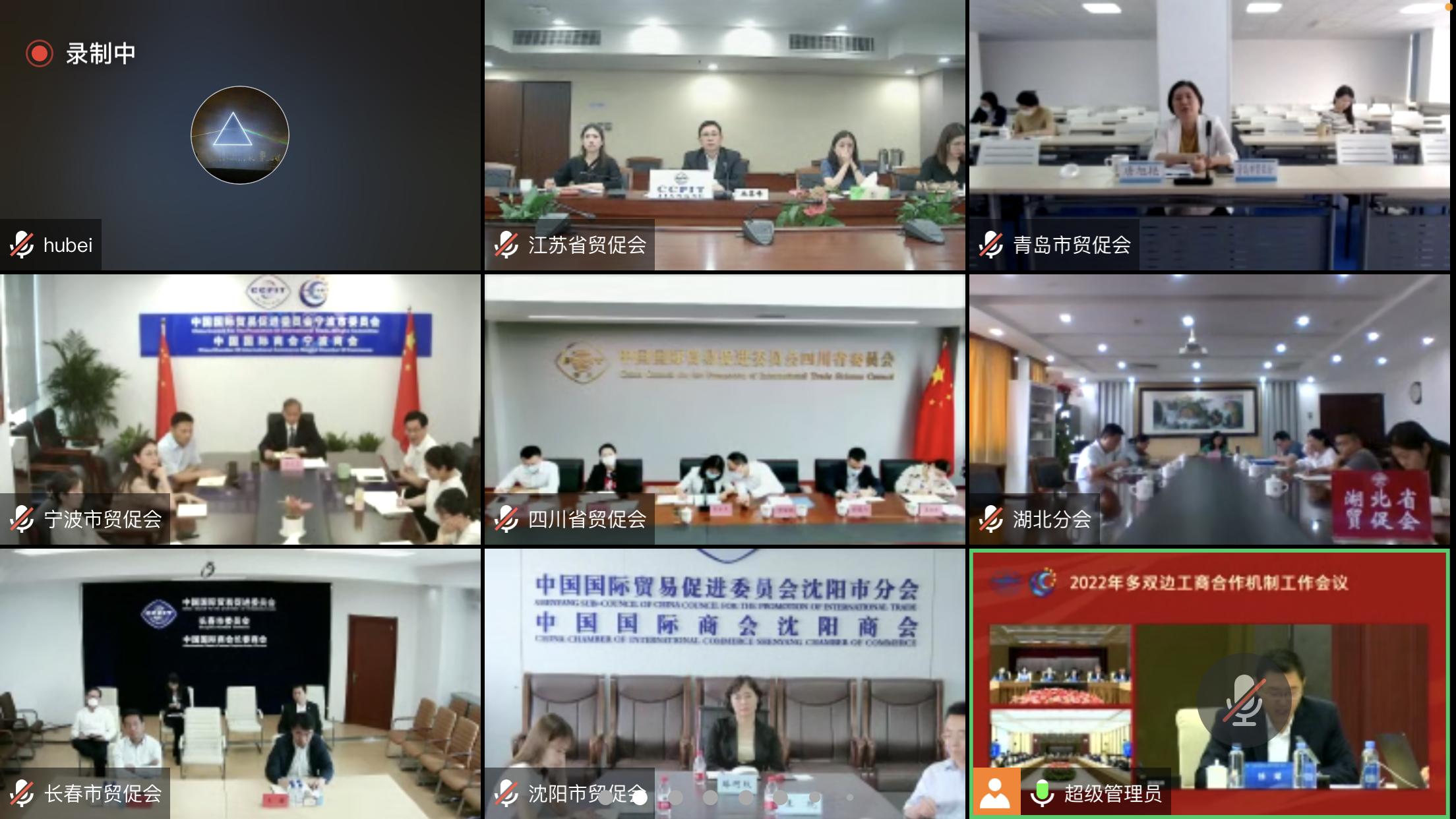 8月30日上午,2022年多双边工商合作机制工作视频会议在北京召开。会议由中国国际商会秘书长孙晓主持,中国贸促会党组成员、副会长张少刚,党组成员于健龙出席会议。来自全国47家地方和4家行业贸促会的200余名代表通过线上和线下方式参会。我会副主任李晓燕、对外联络部负责人线上参加了会议。