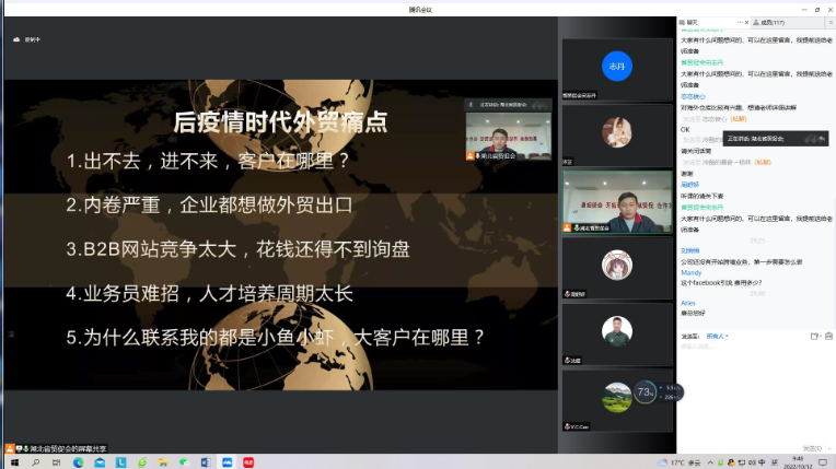 此次培训邀请了湖北六脉网络技术有限公司创始人陈方晓、武汉克雷德科技有限公司总经理唐超帆、武汉汉欧国际物流有限公司市场部副部长王遥遥授课,从外贸企业线上引流、后疫情时代外贸业务的突破、企业物流方案等方面进行讲解和经验分享,并就参会企业提出的问题进行了现场解答。两个小时的培训过程内容务实、操作性强、生动精彩。