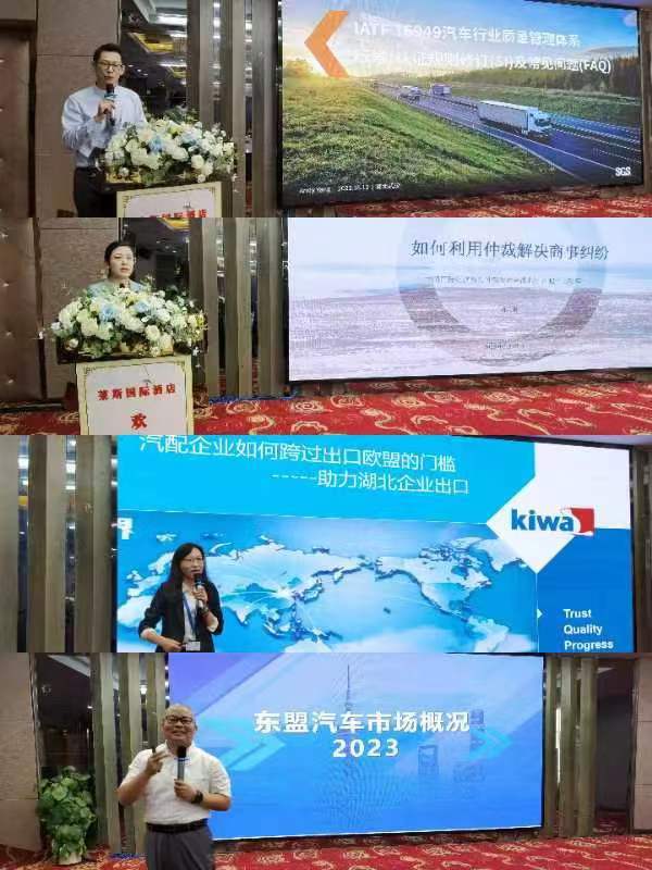 来自全球头部检测认证机构瑞士SGS公司中国市场证书发行签证官杨胜先生和荷兰KIWA集团所属的新世纪检验认证公司产品认证业务总监刘晓岭女士,分别就国际汽车工作组“IATF16949标准和认证规则的更新变化及常见问题”、“汽配企业如何跨过出口欧盟的门槛”等最新规则进行了详细讲解。AMV汽车经理人协会中国区理事长、上海蓝色愿景(汽车)集团创始人胡勇先生应邀介绍了印尼等东盟汽车市场情况。讲课专家还通过理论与案例相结合、现场指导诊断的方式,分析了湖北省汽车产业的问题和短板,提出改进意见。参会人员纷纷反映,本次讲座内容非常契合企业需求,专家讲解质量非常高,干货满满,有利于帮助企业掌握最新行业规则,培训企业复合型人才,应对国外技术性贸易壁垒,提升产品出口竞争力。随州程力专用汽车参会代表表示,公司开拓欧盟等发达国家市场,这次讲座对他们非常实用。