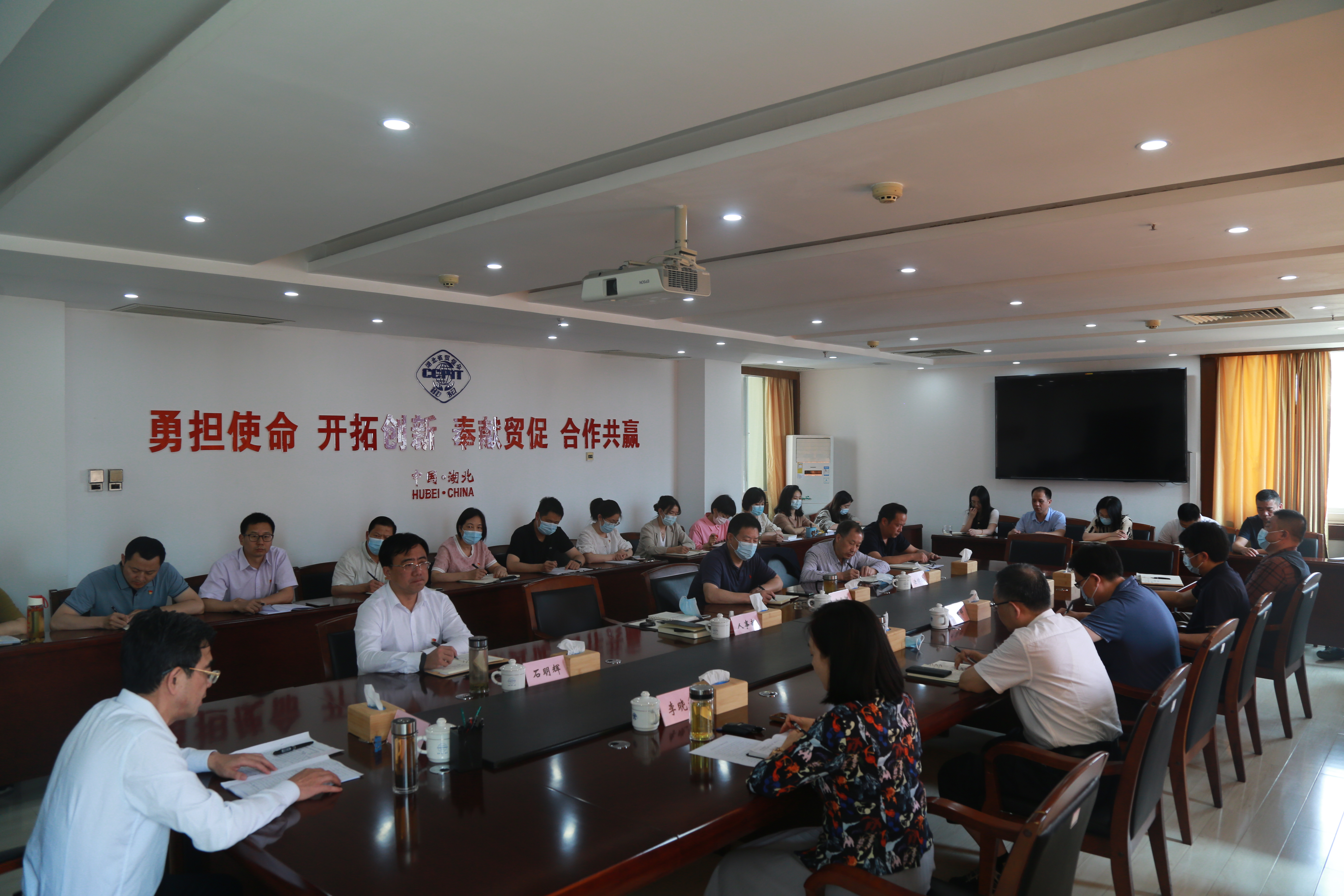 胡主任强调,要深入学习贯彻习近平新时代中国特色社会主义思想,全面贯彻落实党的二十大精神和习近平总书记考察湖北重要指示精神,以及在贸促会成立七十周年大会上视频致辞精神,结合全会正在进行的“三转三提”实践活动以及机关纪律作风建设,紧紧围绕我会当前的工作目标任务,牢牢把握主题教育“学思想、强党性、重实践、建新功”的总要求,高标准做好今年湖北贸促“十大行动”及“一下三民”活动。激励全会党员干部胸怀大局,紧紧围绕新时代新征程党的中心任务,做到学思用贯通,知信行统一,立足本职岗位,以新气象、新作为推动湖北高质量发展,在建设全国构建新发展格局先行区中,谱写新时代湖北贸促事业新篇章。
