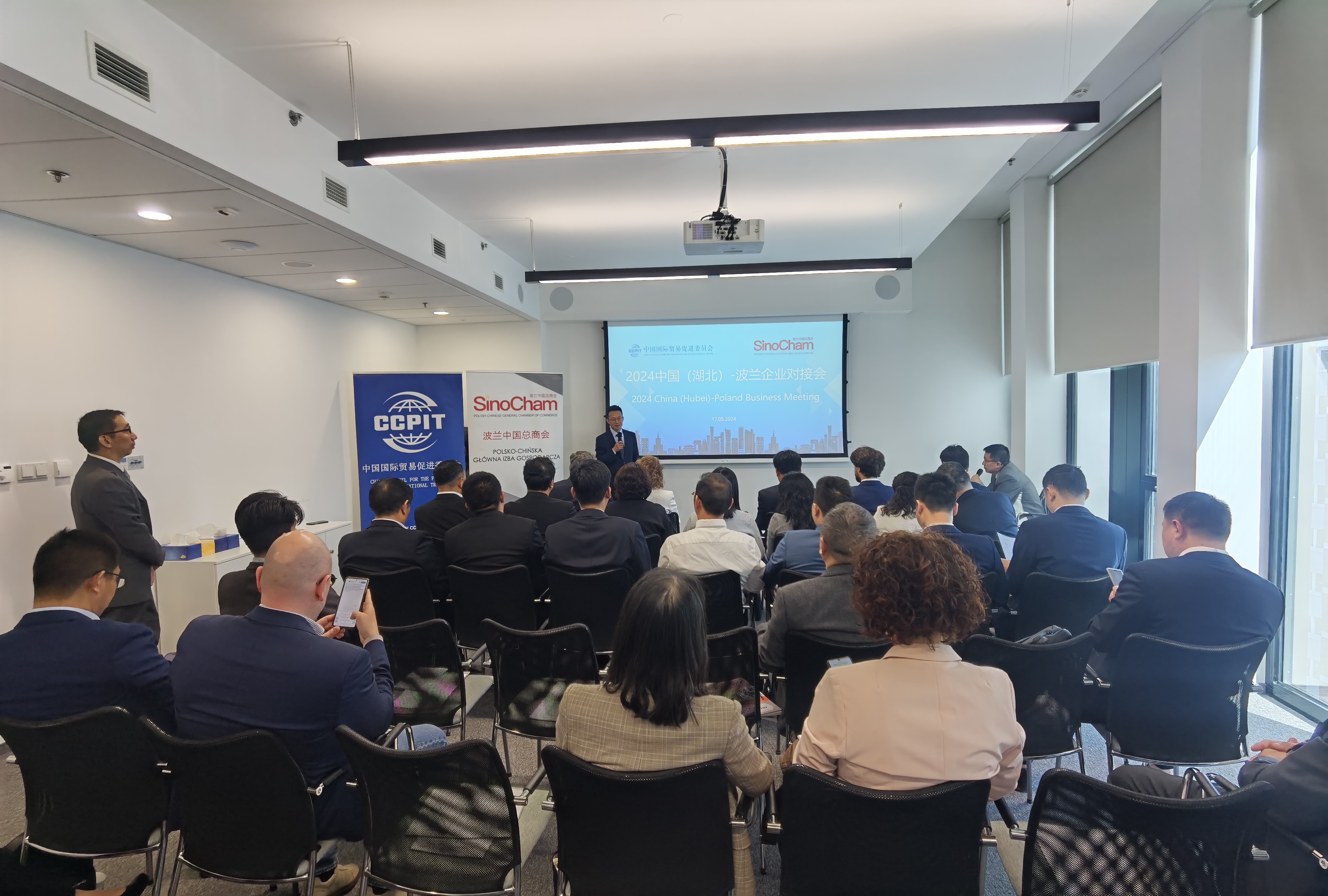 5月17日,首都华沙,“中国湖北-波兰企业对接会”在波兰中国总商会会议室如期举行。中国驻波兰大使馆经商处参赞徐晓峰、波兰中国总商会秘书长郭培东、波兰亚洲商会会长比霍勤斯基、波兰卡托维茨工商会副主席玛勒纳·米阿斯科、波兰投资贸易局代表简·沃格沃斯基等代表出席活动并致辞。石明辉副主任对我省省情、重点合作产业进行推介,荆门市贸促会副会长胡清华做了荆门产业专题推介。徐晓峰参赞说到,今年是中波建交75周年,波兰作为欧洲发展迅速、经济活跃的国家之一,是中国在中东欧地区的最大贸易伙伴,湖北长飞光纤、三环集团已落户波兰,欢迎更多的湖北企业来波兰开展业务,中国驻波兰大使馆经商处将一如既往为企业国际经营发展提供支持。省贸促会石明辉副主任在发言中介绍,波兰作为中东欧发展最快、经济最活跃的国家,凭借着稳定的经济、位于欧洲中心的地理位置等多种优势,正在发展成为独具特色的电动汽车产业集聚区。汽车产业是湖北省支柱产业之一,新能源与智能网联汽车是湖北着力打造世界级产业集群、突破性发展的五大优势产业之一,拥有完整的产业链和强大的创新能力。双方市场规模和资源禀赋优势各异,产业互补性强,发展前景广阔。希望以此次对接会为契机,双方企业家进行广泛深入交流,深化务实合作,推动汽车产业、航空服务业等领域国际合作稳固发展。