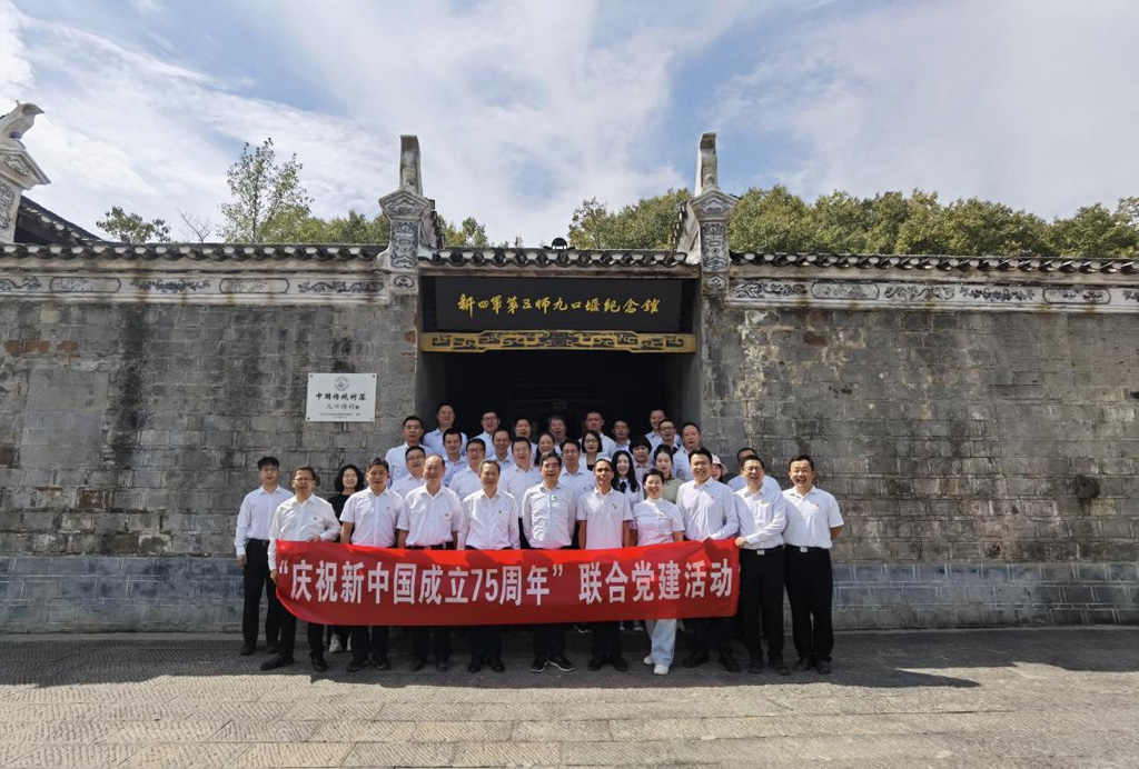 为庆祝新中国成立75周年,深化爱国主义与党性党纪教育,加强与友邻单位联谊共建,增进改革发展合力,谱写高质量发展新篇,9月25日,省贸促会、省纪委监委派驻省商务厅纪检监察组、商务部驻武汉特派员办事处三家单位共赴随州市九口堰革命旧址纪念馆党员干部教育培训基地,开展联合党建活动。三家单位党员干部职工40余人参加活动,省贸促会主任胡中海、省纪委监委派驻省商务厅纪检监察组组长陈五川、商务部驻武汉特派员办事处副特派员张楚虎出席活动。