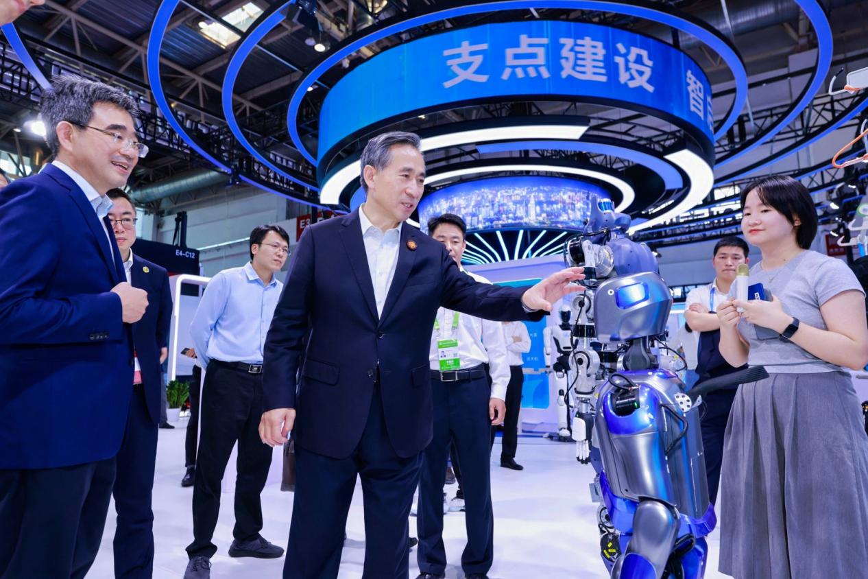 中国贸促会任鸿斌会长巡视链博会湖北馆点赞湖北人形机器人