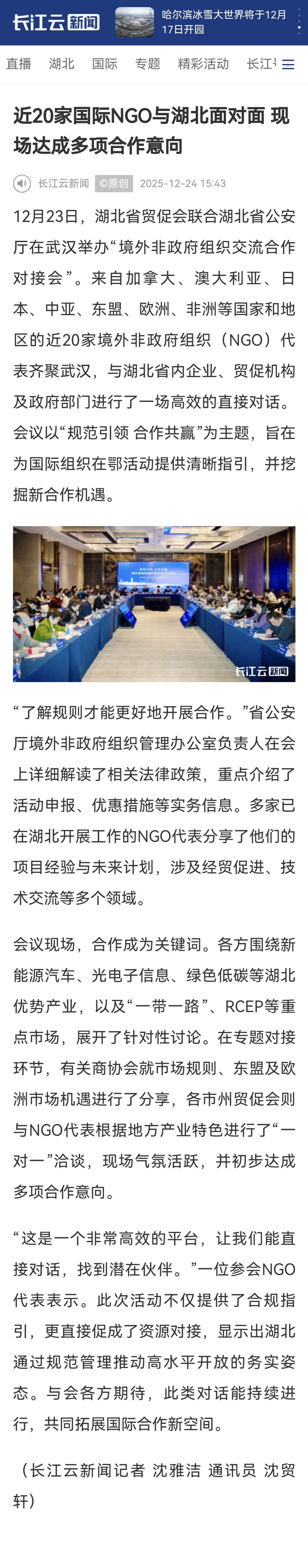湖北电视台:近20家国际NGO与湖北面对面 现场达成多项合作意向