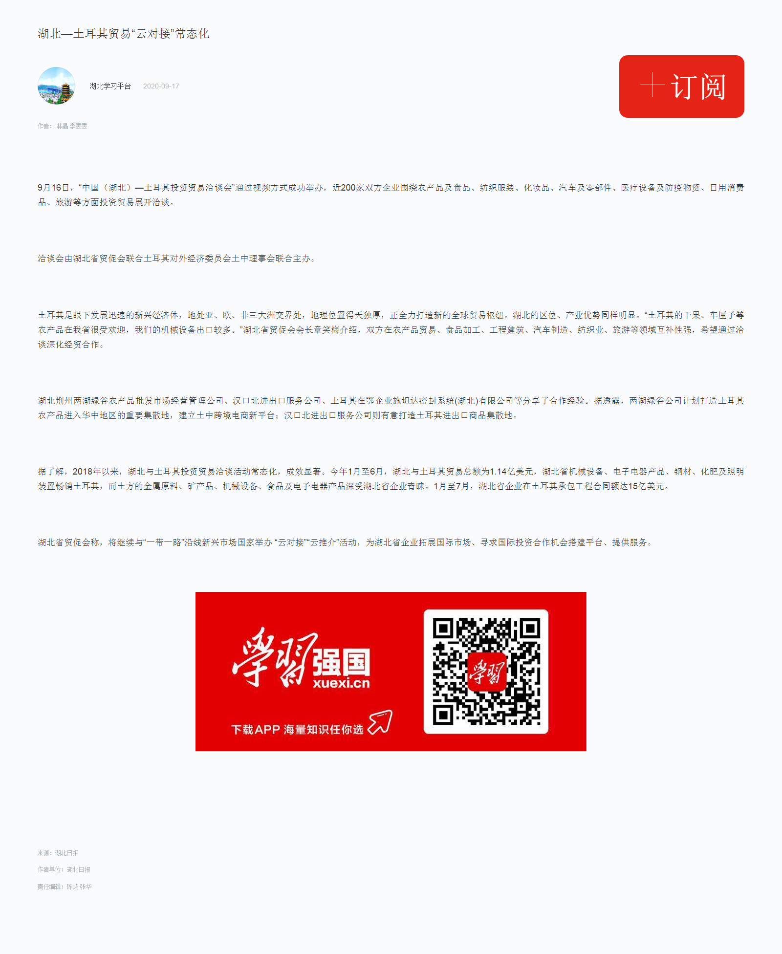 学习强国:湖北—土耳其贸易“云对接”常态化