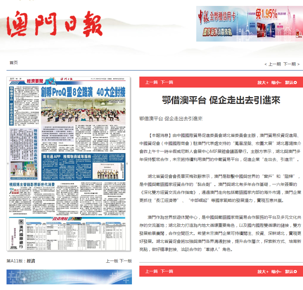 澳门日报:鄂借澳平台 促企走出去引进來