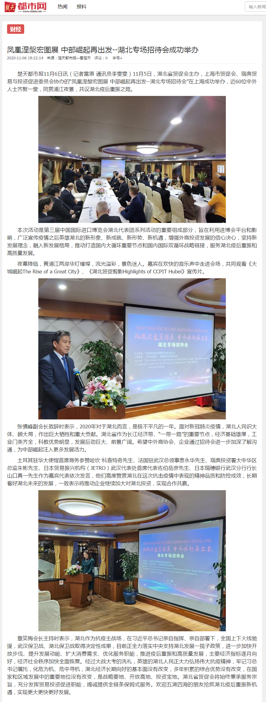 楚天都市报:凤凰涅槃宏图展 中部崛起再出发--湖北专场招待会成功举办