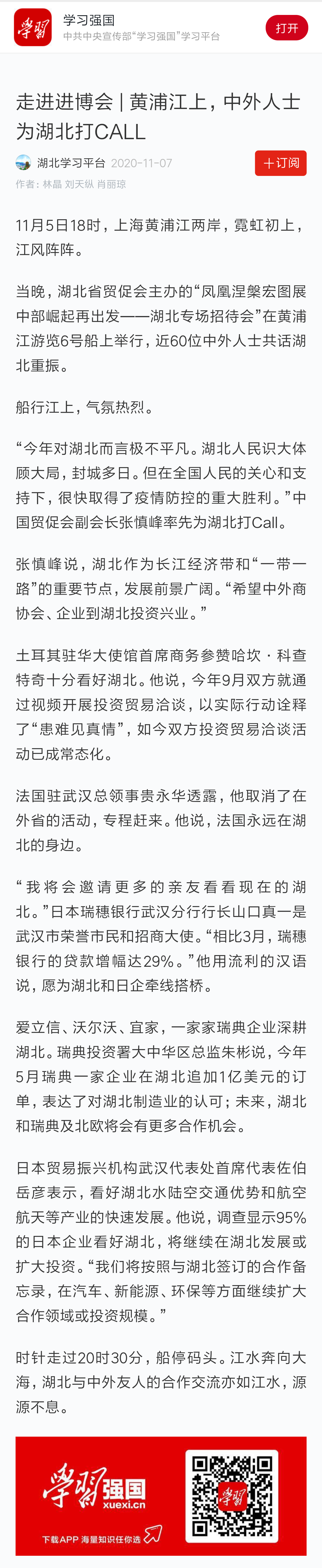 学习强国:黄浦江上,中外人士为湖北打CALL