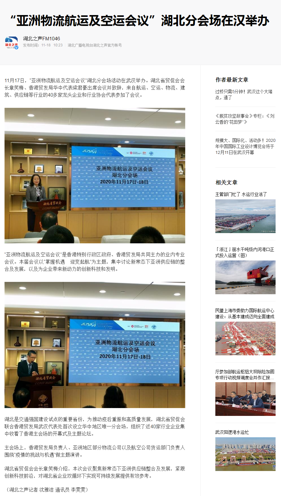 湖北之声:“亚洲物流航运及空运会议”湖北分会场在汉举办