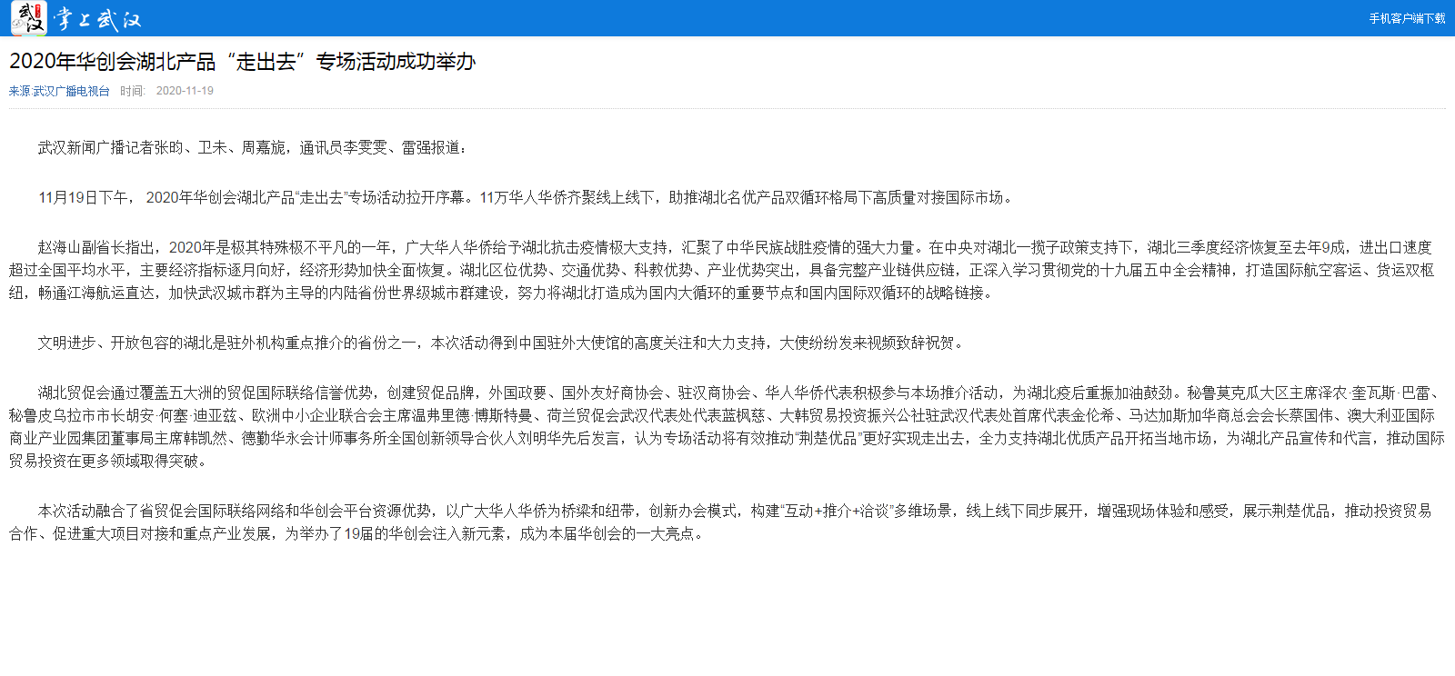 武汉新闻广播:2020年华创会湖北产品“走出去”专场活动成功举办