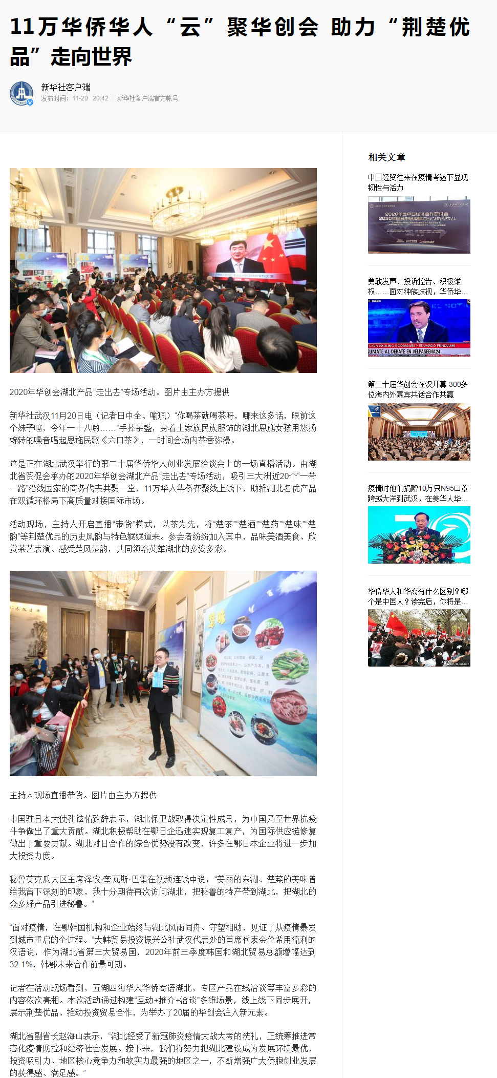 新华社:11万华侨华人“云”聚华创会 助力“荆楚优品”走向世界