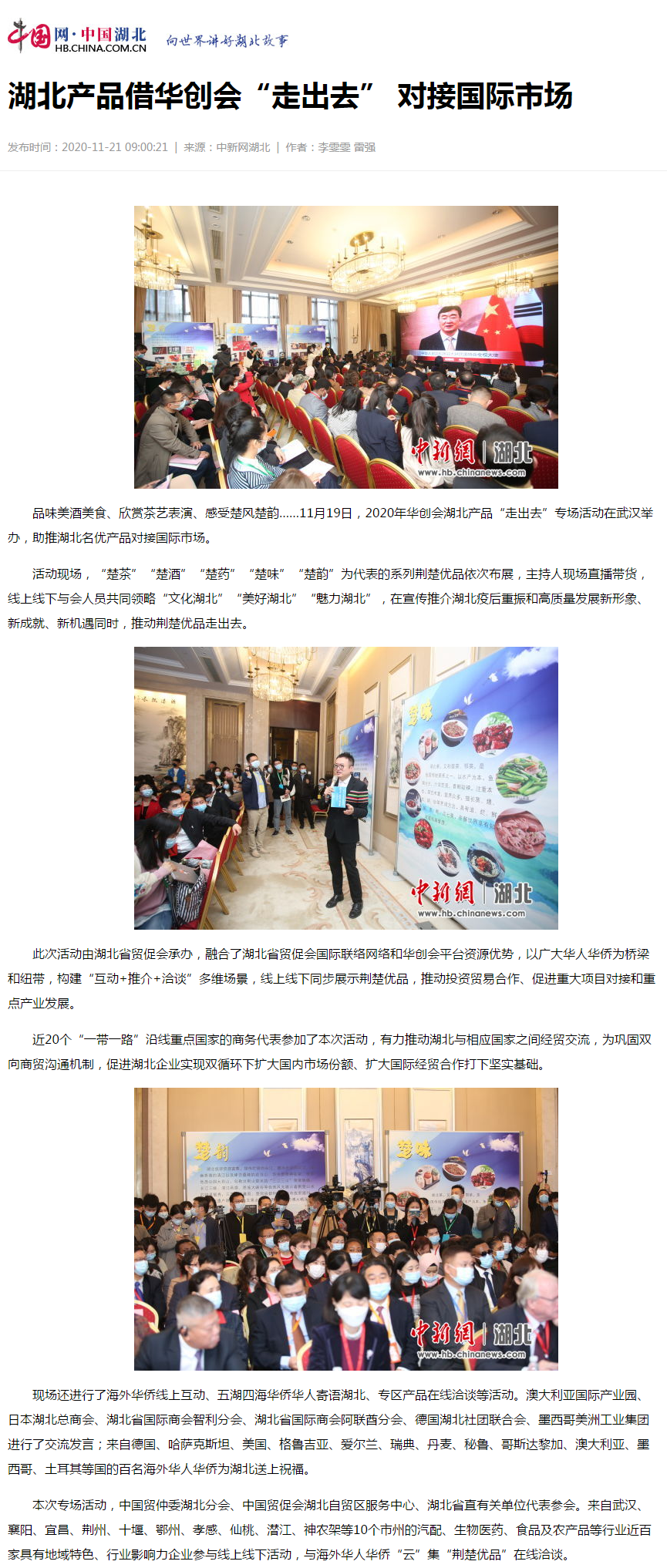 中国网:湖北产品借华创会“走出去” 对接国际市场