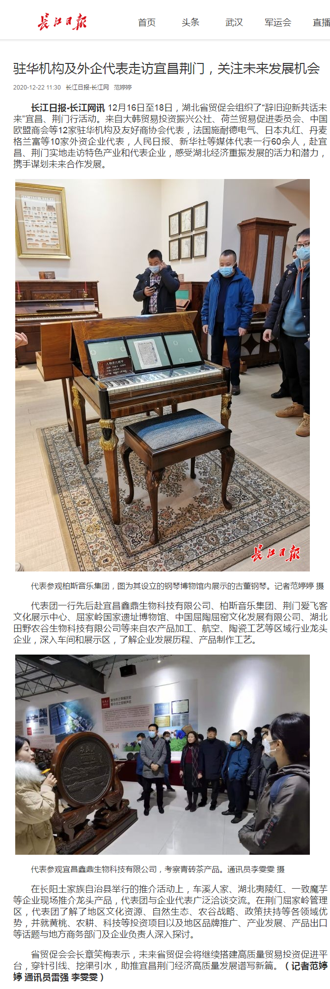 长江日报:驻华机构及外企代表走访宜昌荆门,关注未来发展机会