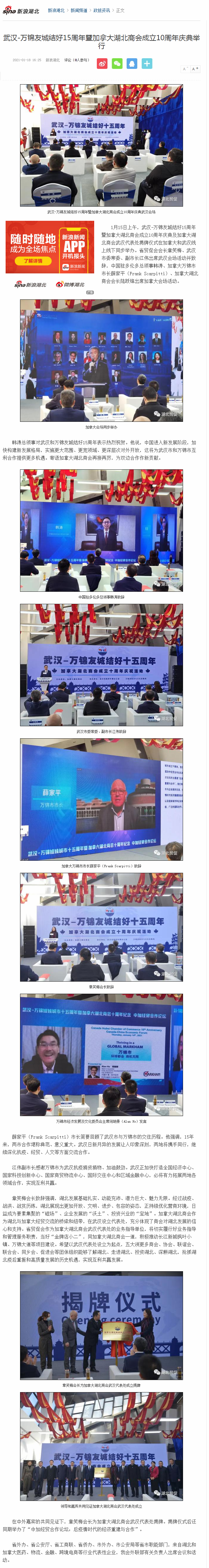 新浪网:武汉-万锦友城结好15周年暨加拿大湖北商会成立10周年庆典举行
