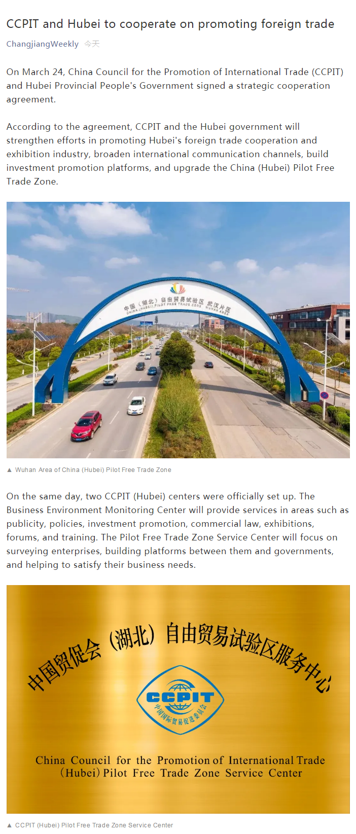 ChangjiangWeekly:CCPIT and Hubei to cooperate on promoting foreign trade