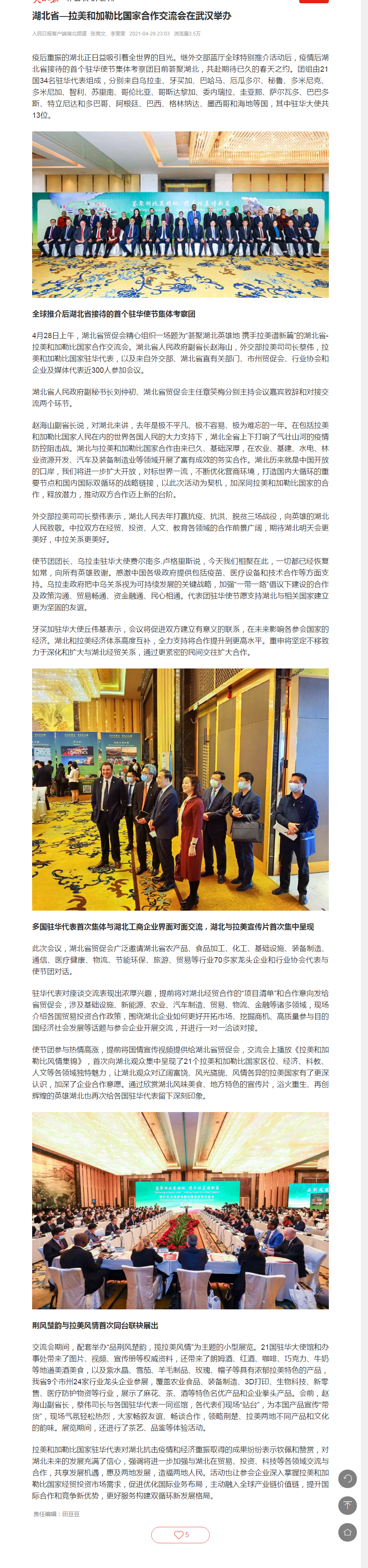 人民日报:湖北省—拉美和加勒比国家合作交流会在武汉举办