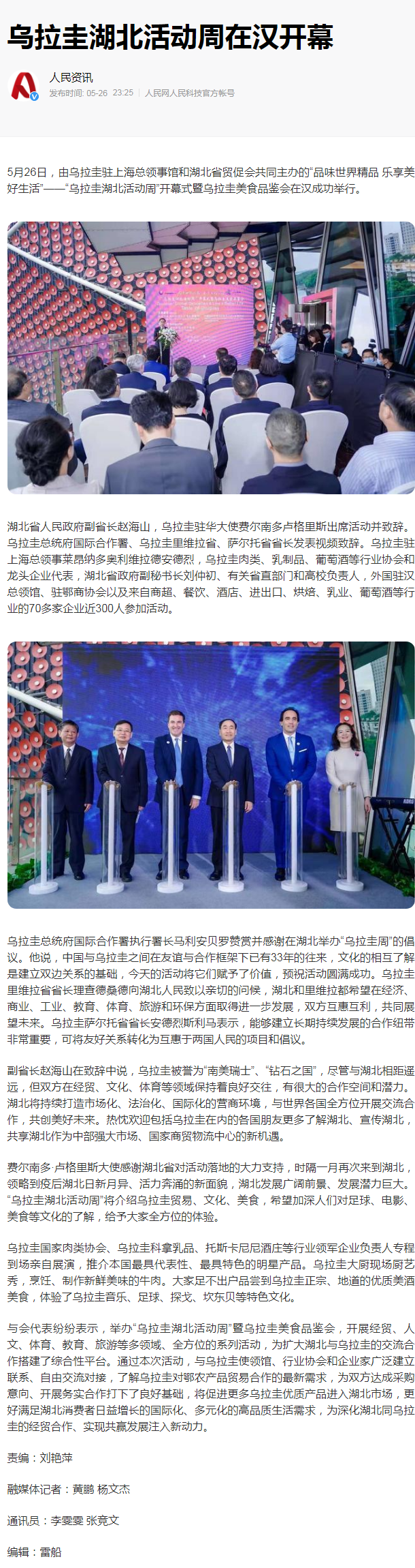 人民资讯:乌拉圭湖北活动周在汉开幕
