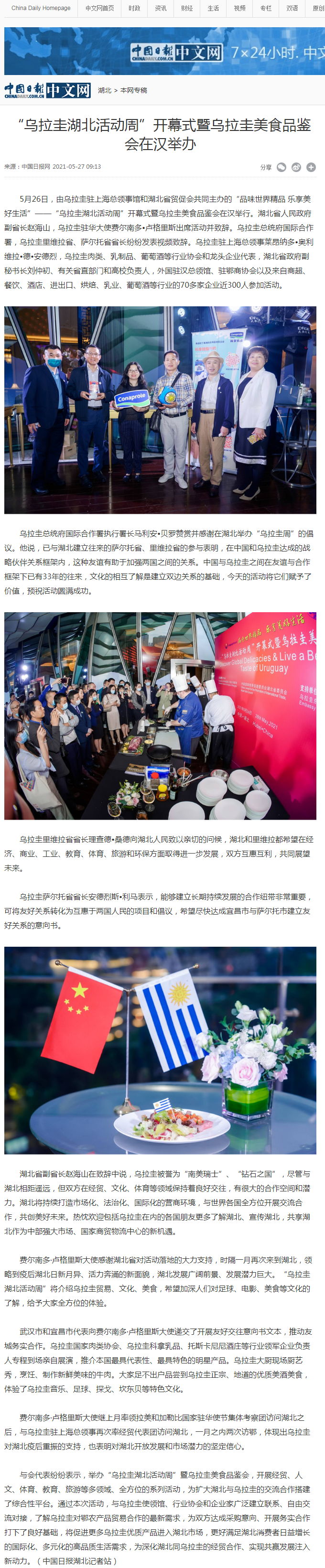 中国日报:“乌拉圭湖北活动周”开幕式暨乌拉圭美食品鉴会在汉举办