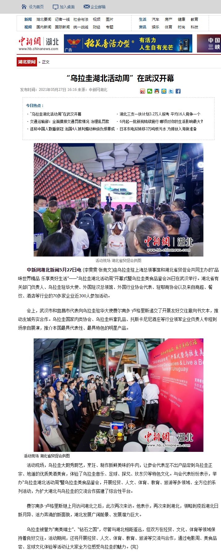 中新网:“乌拉圭湖北活动周”在武汉开幕