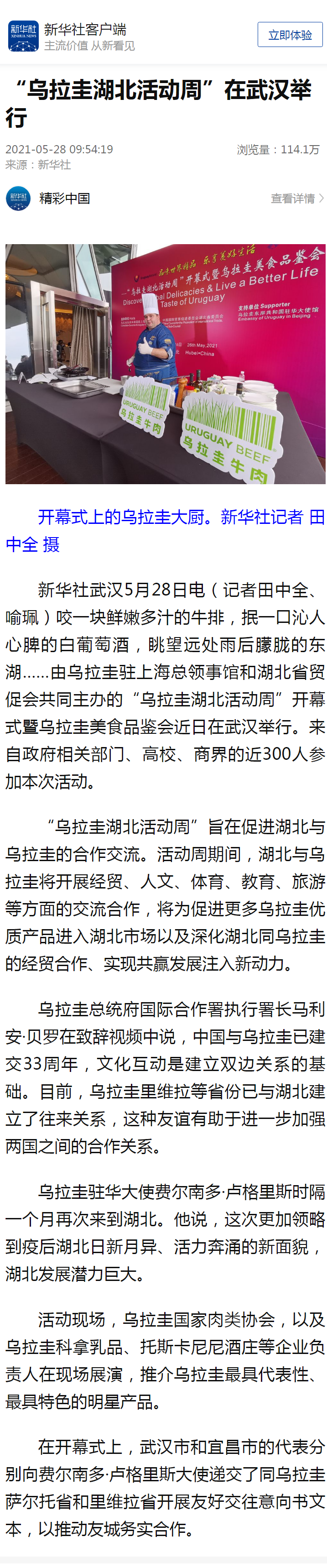 新华社:“乌拉圭湖北活动周”在武汉举行