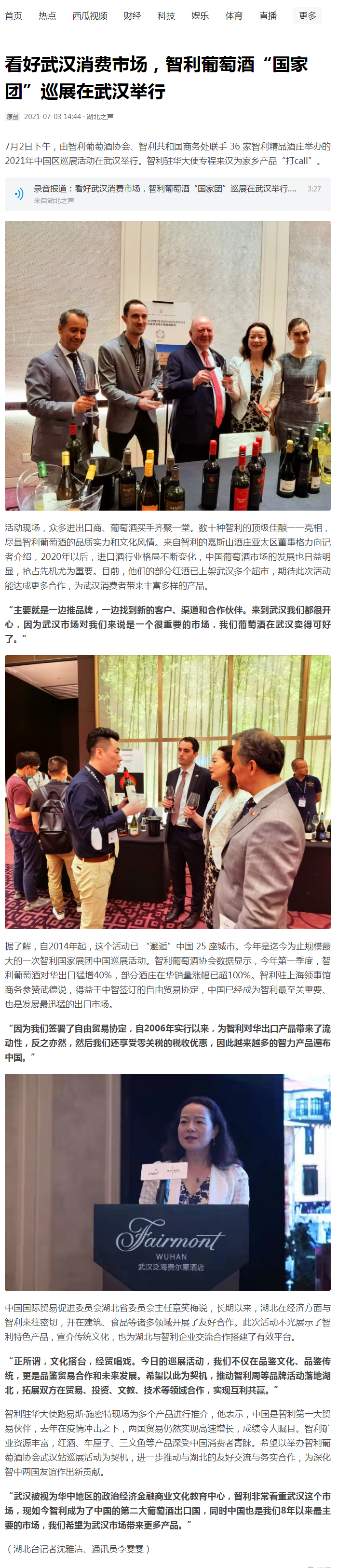 湖北之声:看好武汉消费市场,智利葡萄酒“国家团”巡展在武汉举行