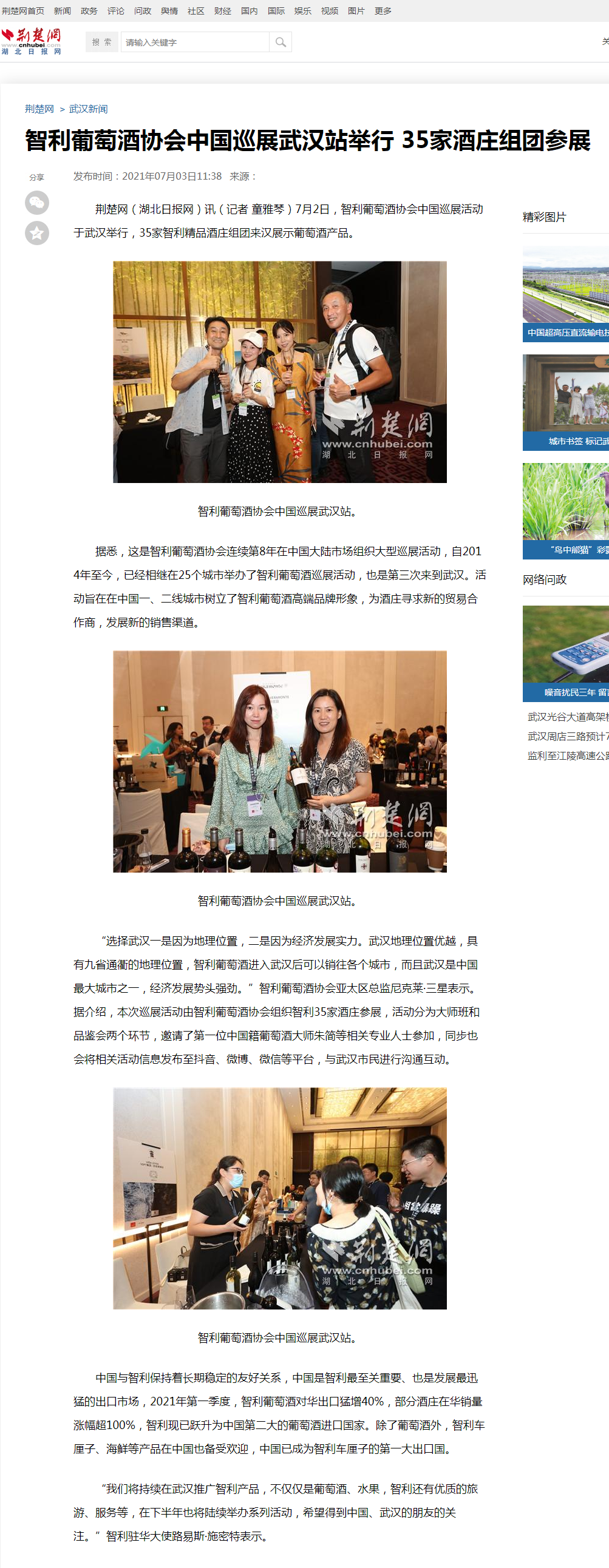 荆楚网:智利葡萄酒协会中国巡展武汉站举行 35家酒庄组团参展