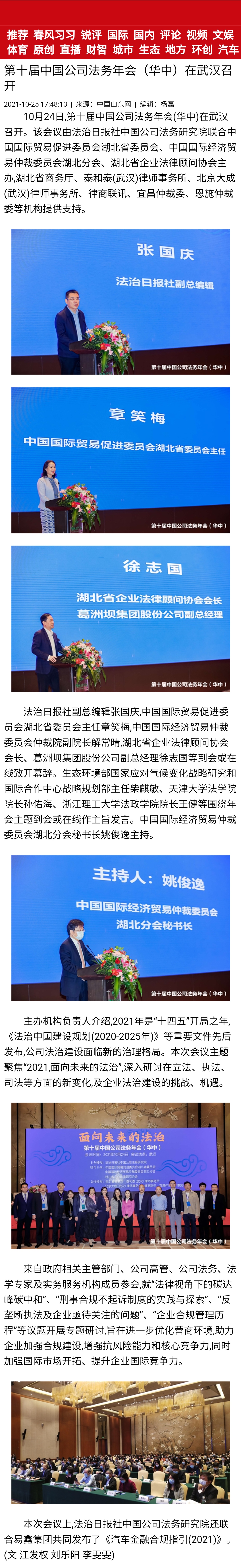 中央广电总台国际在线:第十届中国公司法务年会(华中)在武汉召开