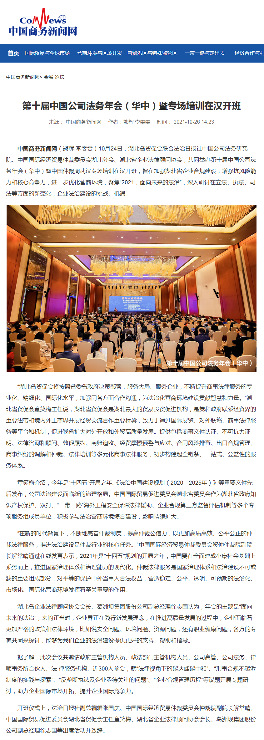 国际商报:第十届中国公司法务年会(华中)暨专场培训在汉开班
