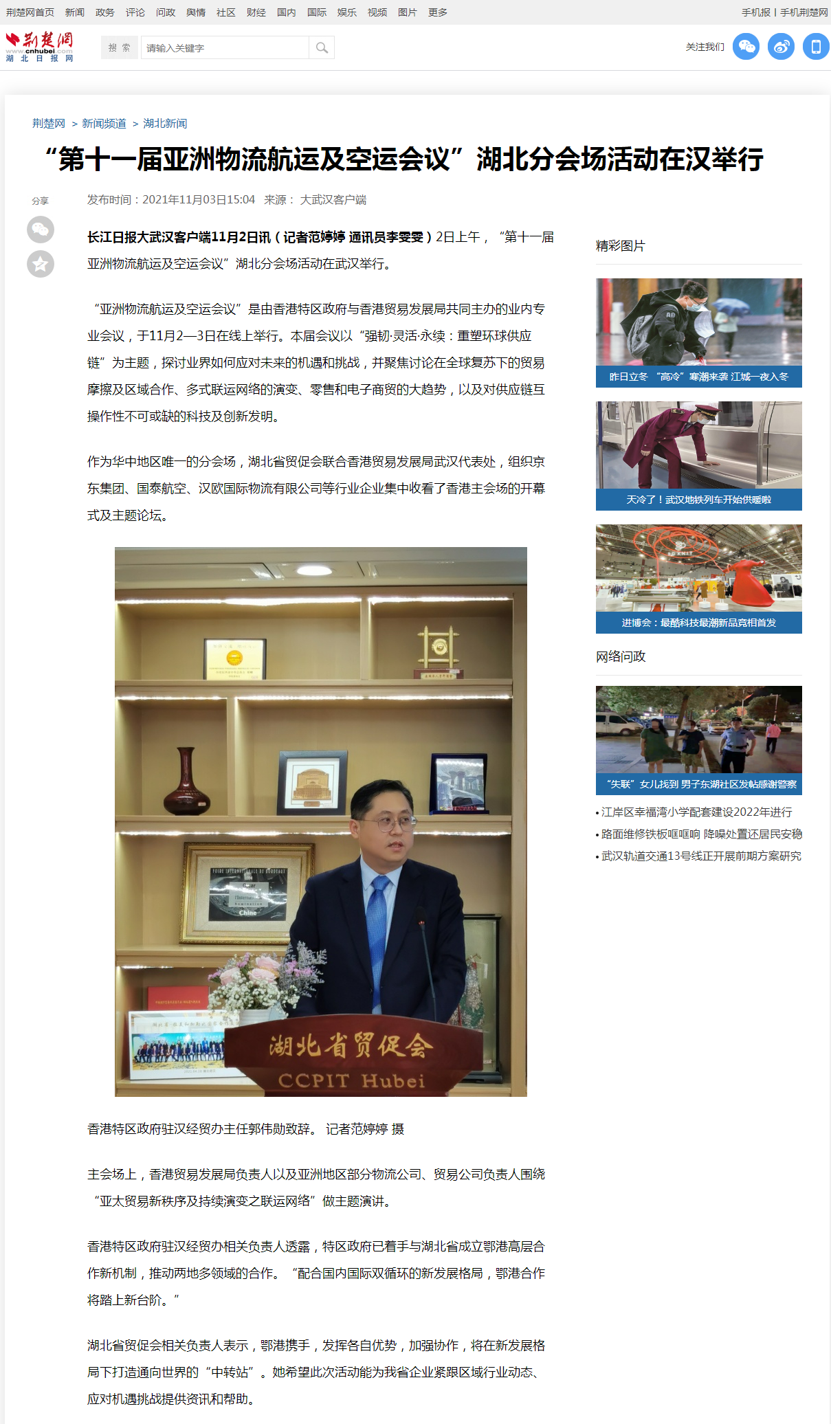 荆楚网:第十一届亚洲物流航运及空运会议”湖北分会场活动在汉举行