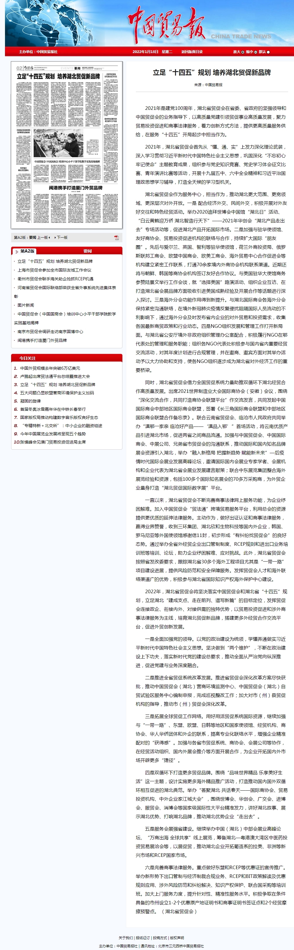 中国贸易报:立足“十四五”规划 培养湖北贸促新品牌