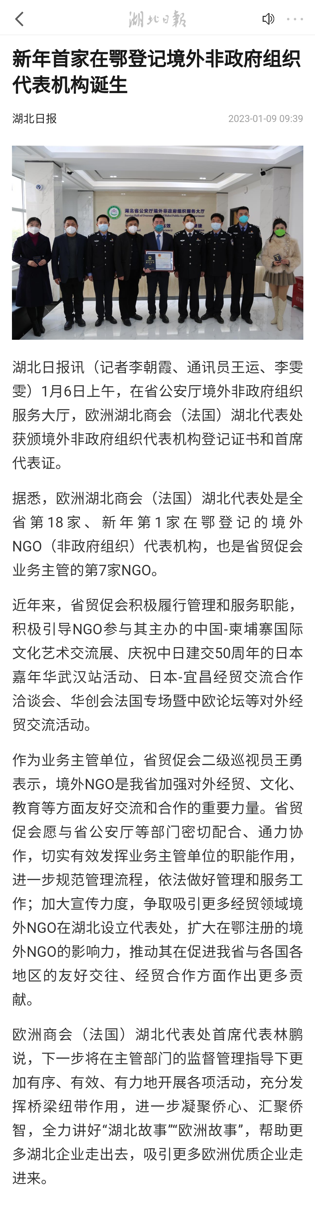 湖北日报:新年首家在鄂登记境外非政府组织代表机构诞生