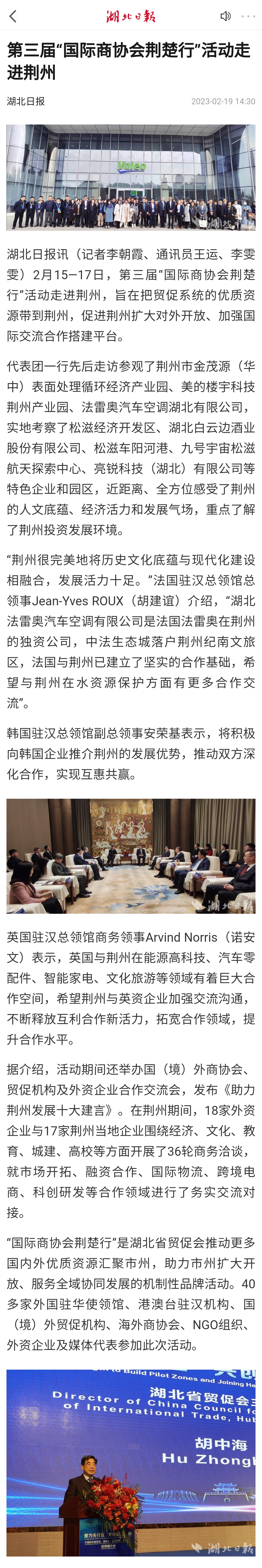 湖北日报:第三届“国际商协会荆楚行”活动走进荆州