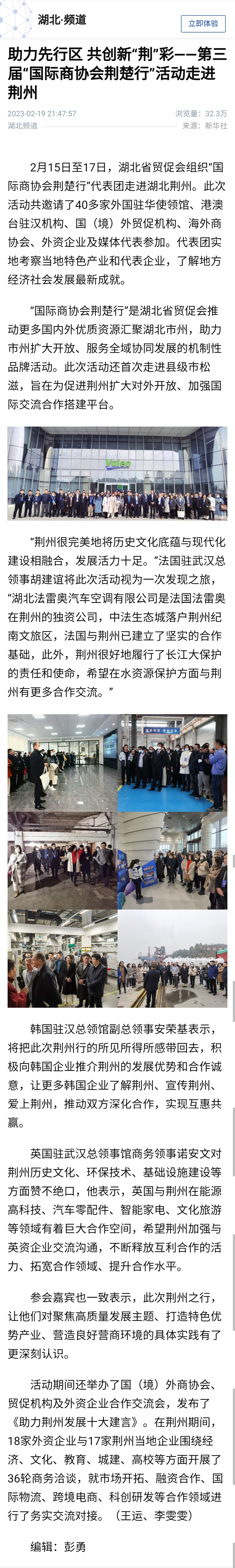 新华社:助力先行区 共创新“荆”彩——第三届“国际商协会荆楚行”活动走进荆州