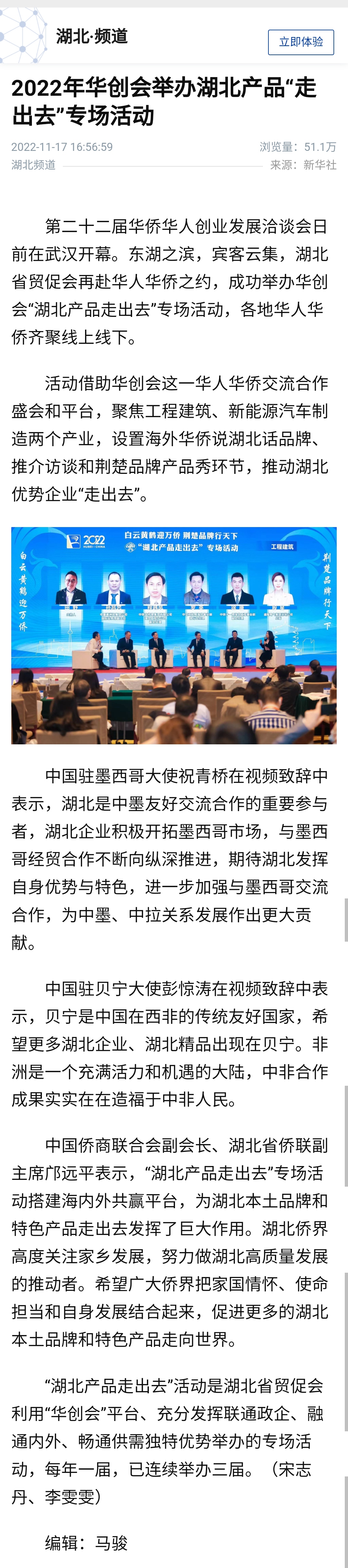 新华社:2022年华创会举办湖北产品“走出去”专场活动