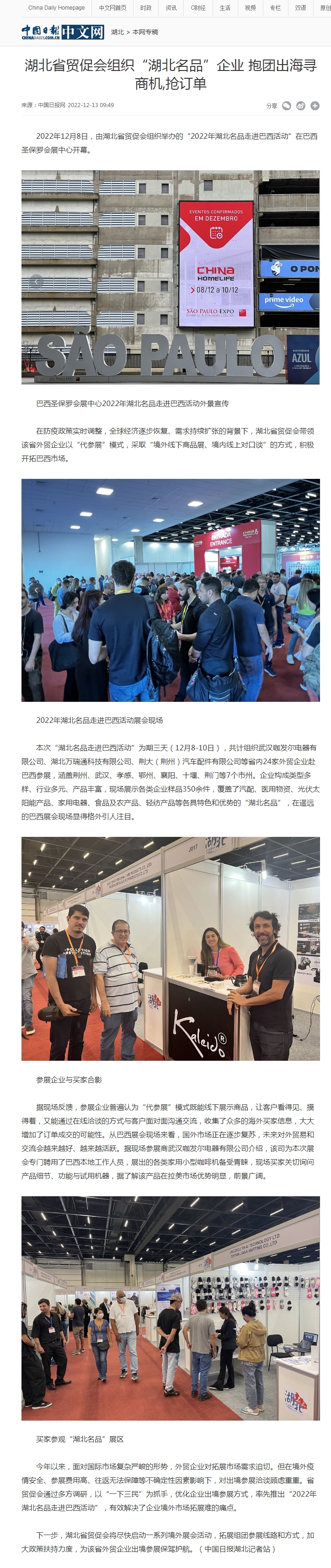 中国日报:湖北省贸促会组织“湖北名品”企业 抱团出海寻商机,抢订单