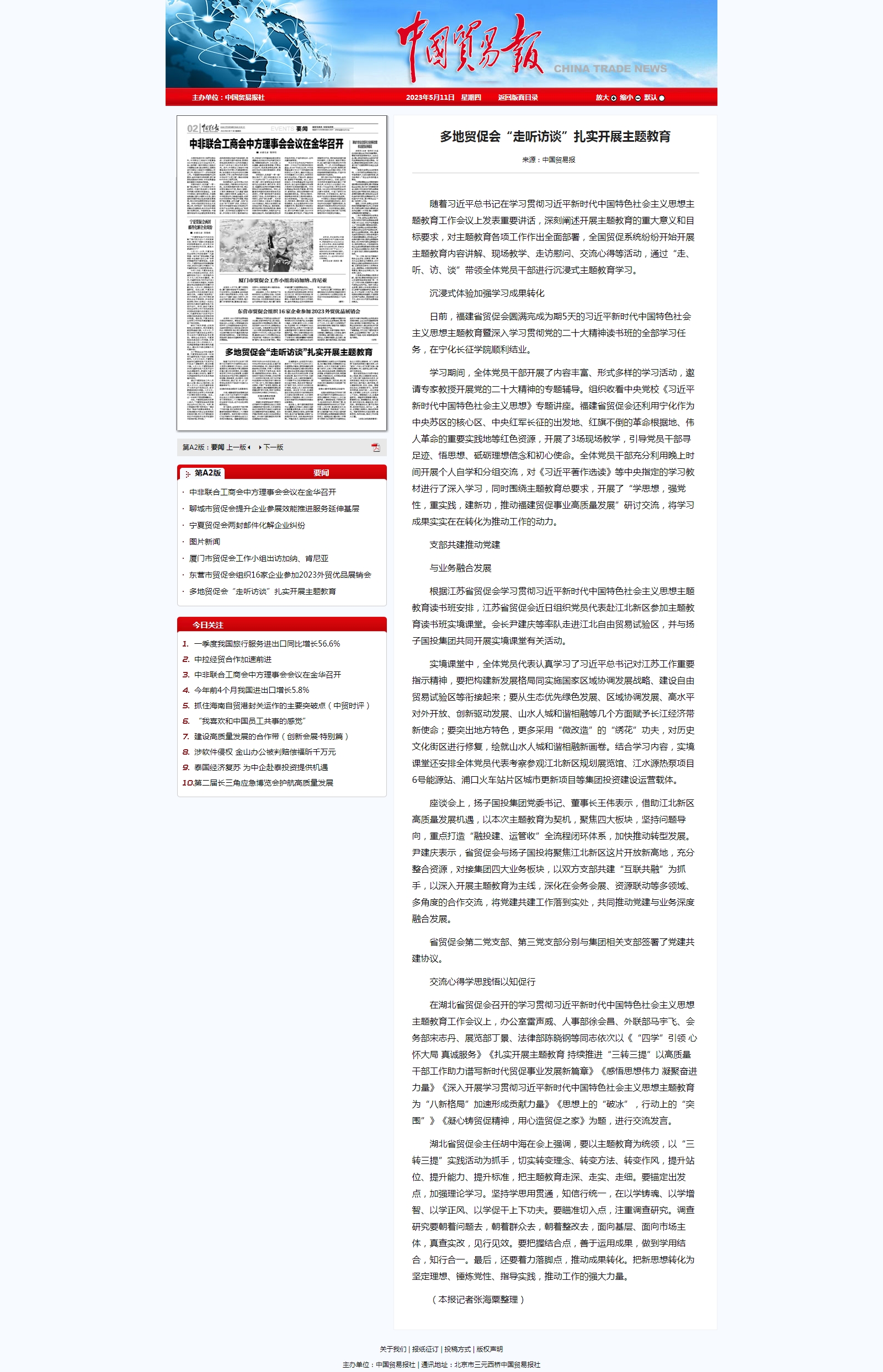 中国贸易报 :多地贸促会“走听访谈”扎实开展主题教育